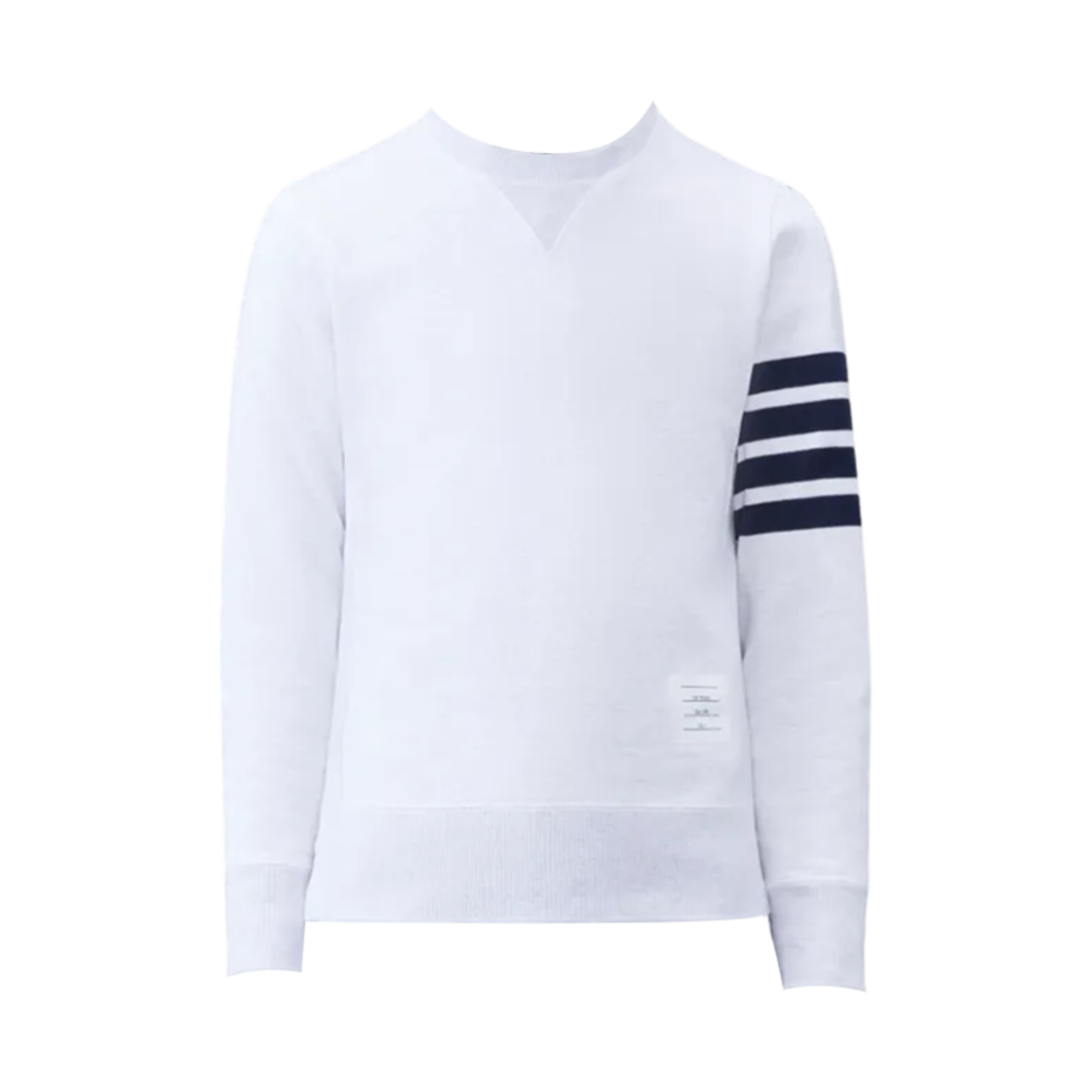 톰브라운 클래식 코튼 루프백 프린트 멀티컬러 다이애그널 스트라이프 릴렉스 핏 크루넥 스웨트셔츠 화이트