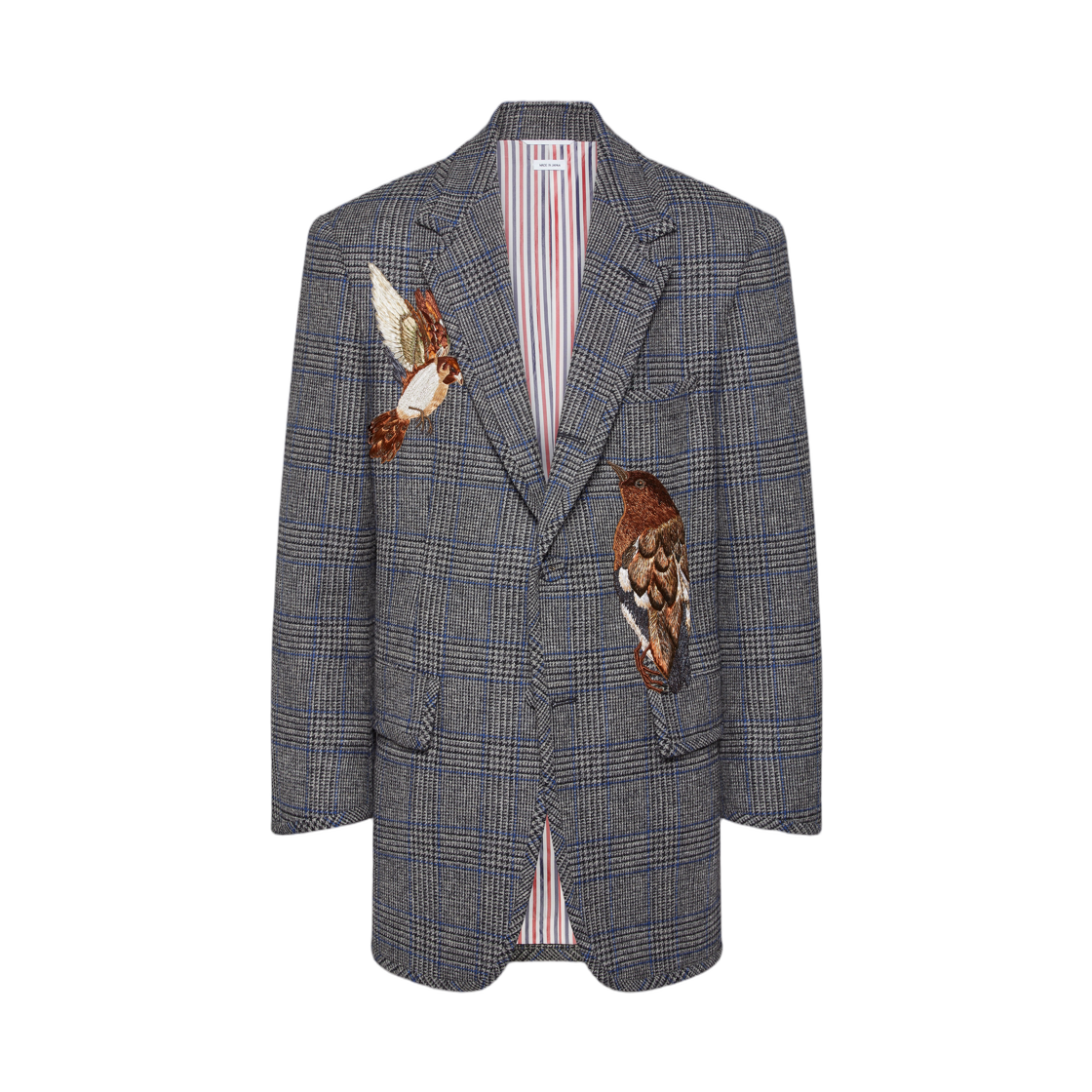 톰브라운 프린스 오브 웨일스 헌팅 트위드 버드 아플리케 오버사이즈 자켓 메드 그레이