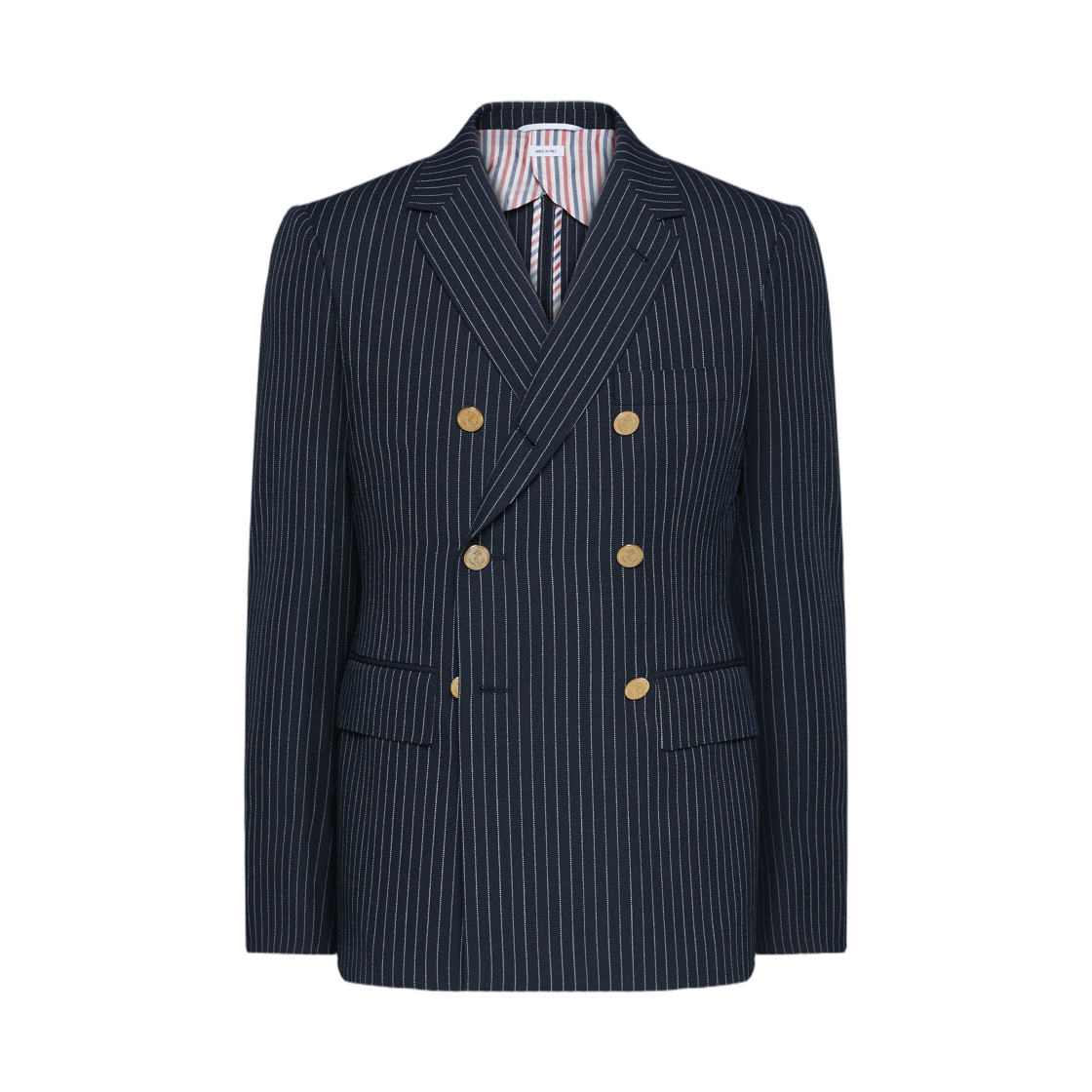 톰브라운 핀스트라이프 하이 트위스트 울 스포츠 코트 네이비