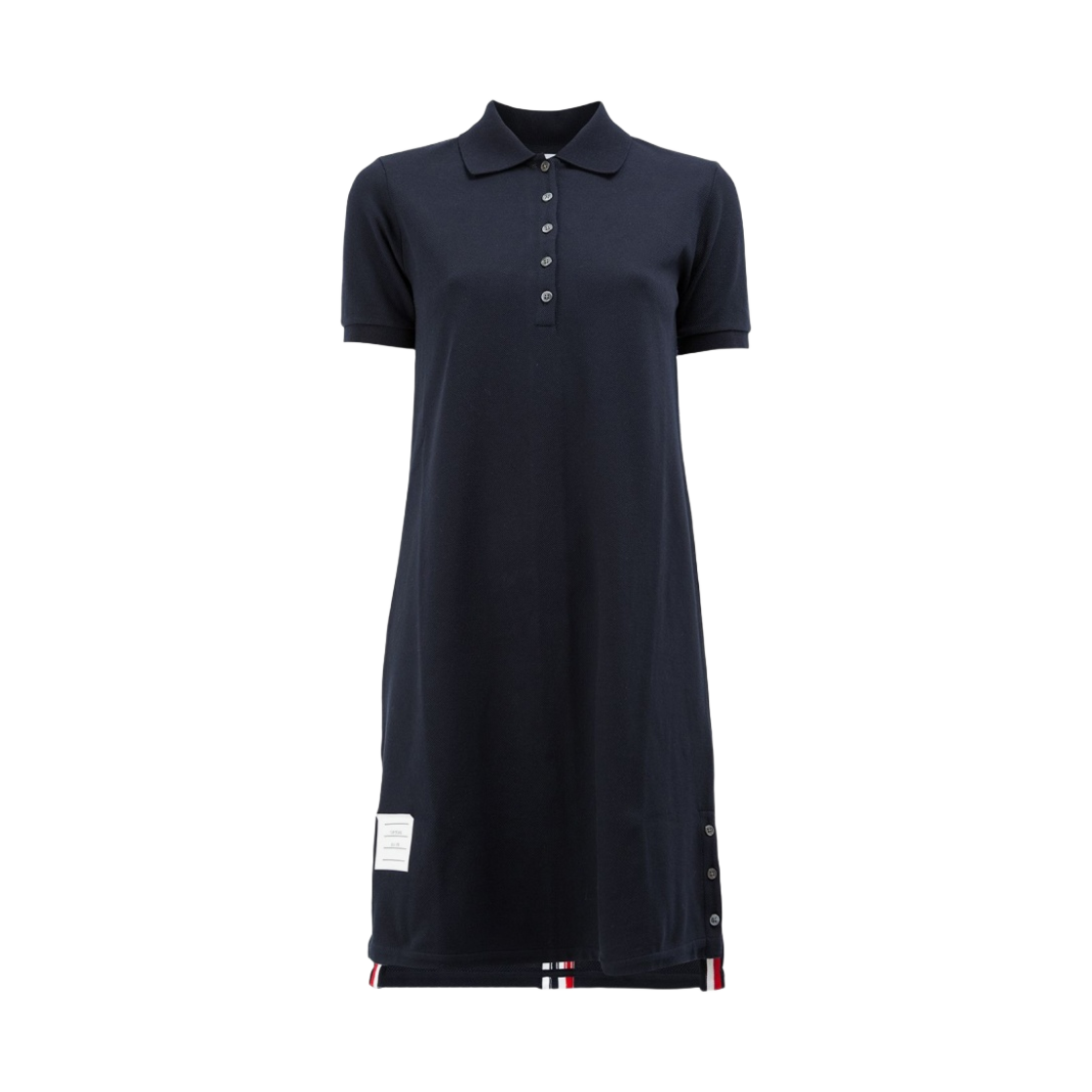 (W) 톰브라운 클래식 코튼 피케 센터 백 스트라이프 에이라인 숏슬리브 폴로 셔츠 드레스 네이비