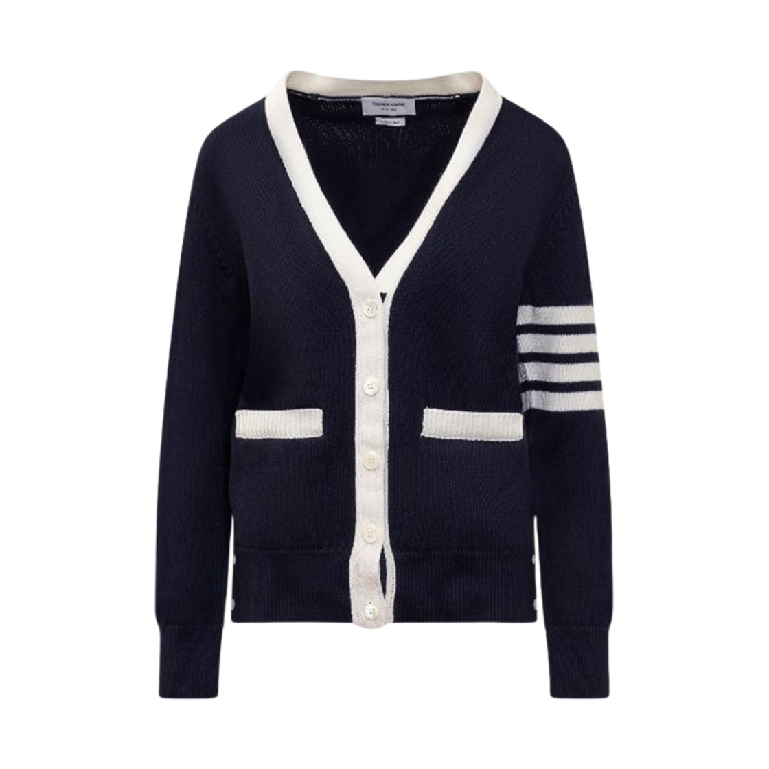 (W) 톰브라운 코튼 사선 헥터 브이넥 가디건 네이비