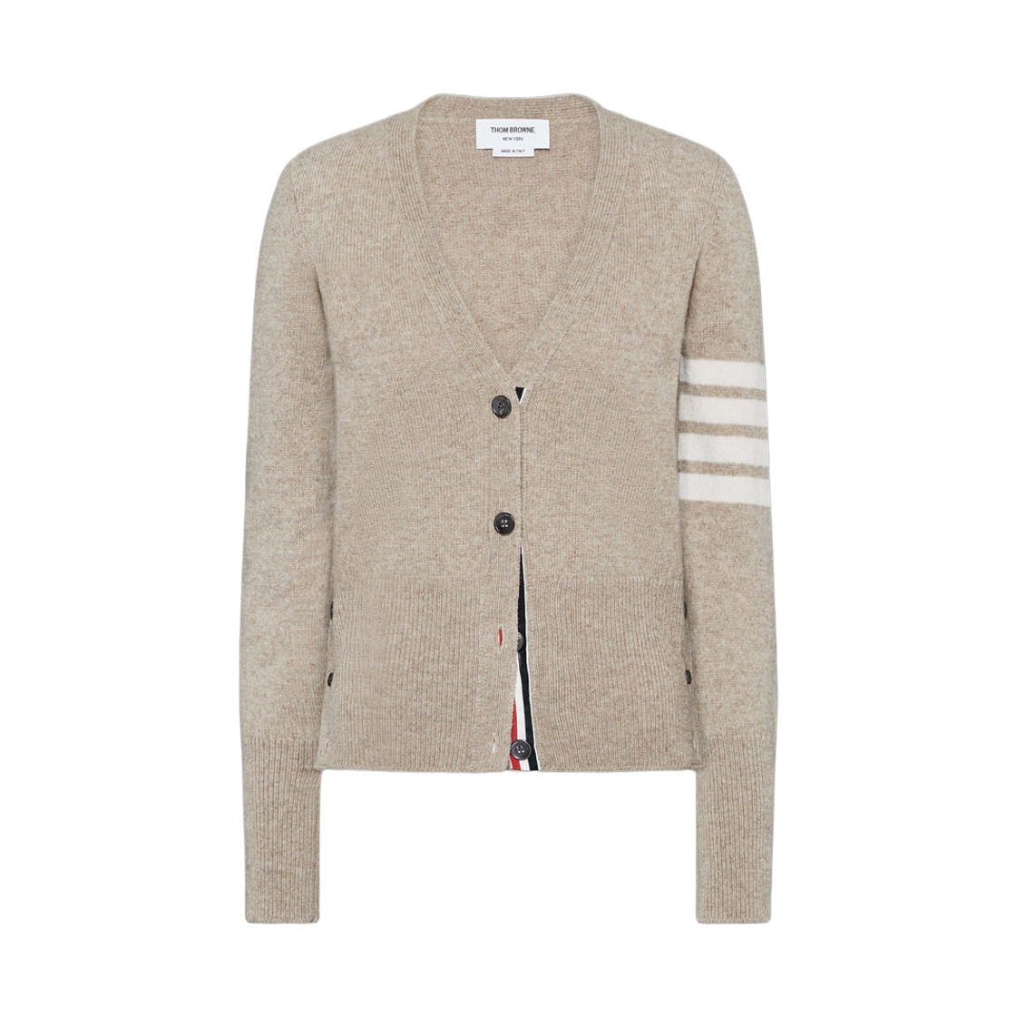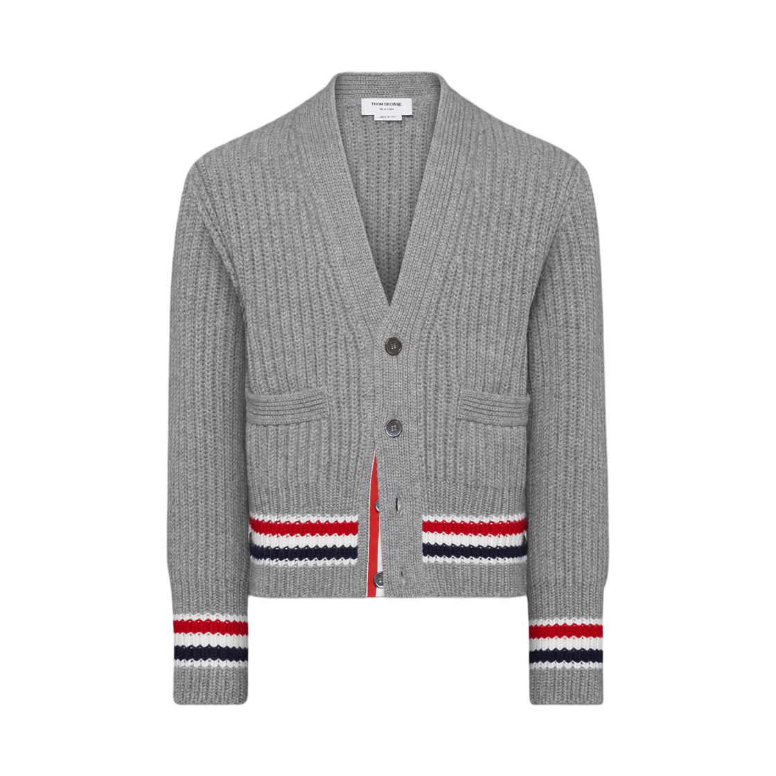 톰브라운 RWB 스트라이프 캐시미어 브이넥 가디건 라이트 그레이