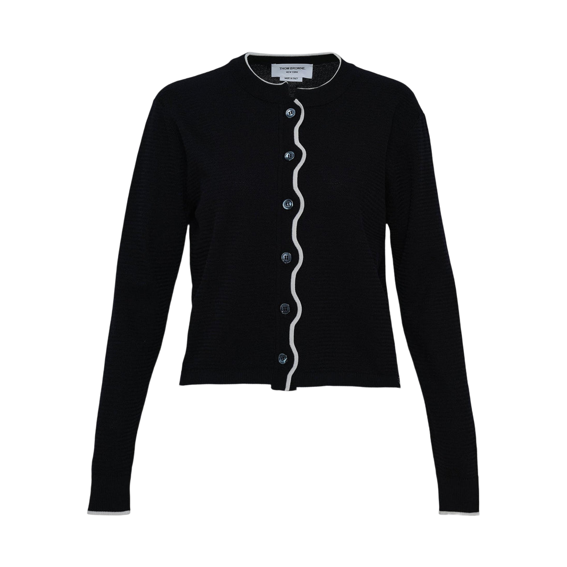 (W) 톰브라운 텍스쳐드 스티치 크루넥 가디건 네이비