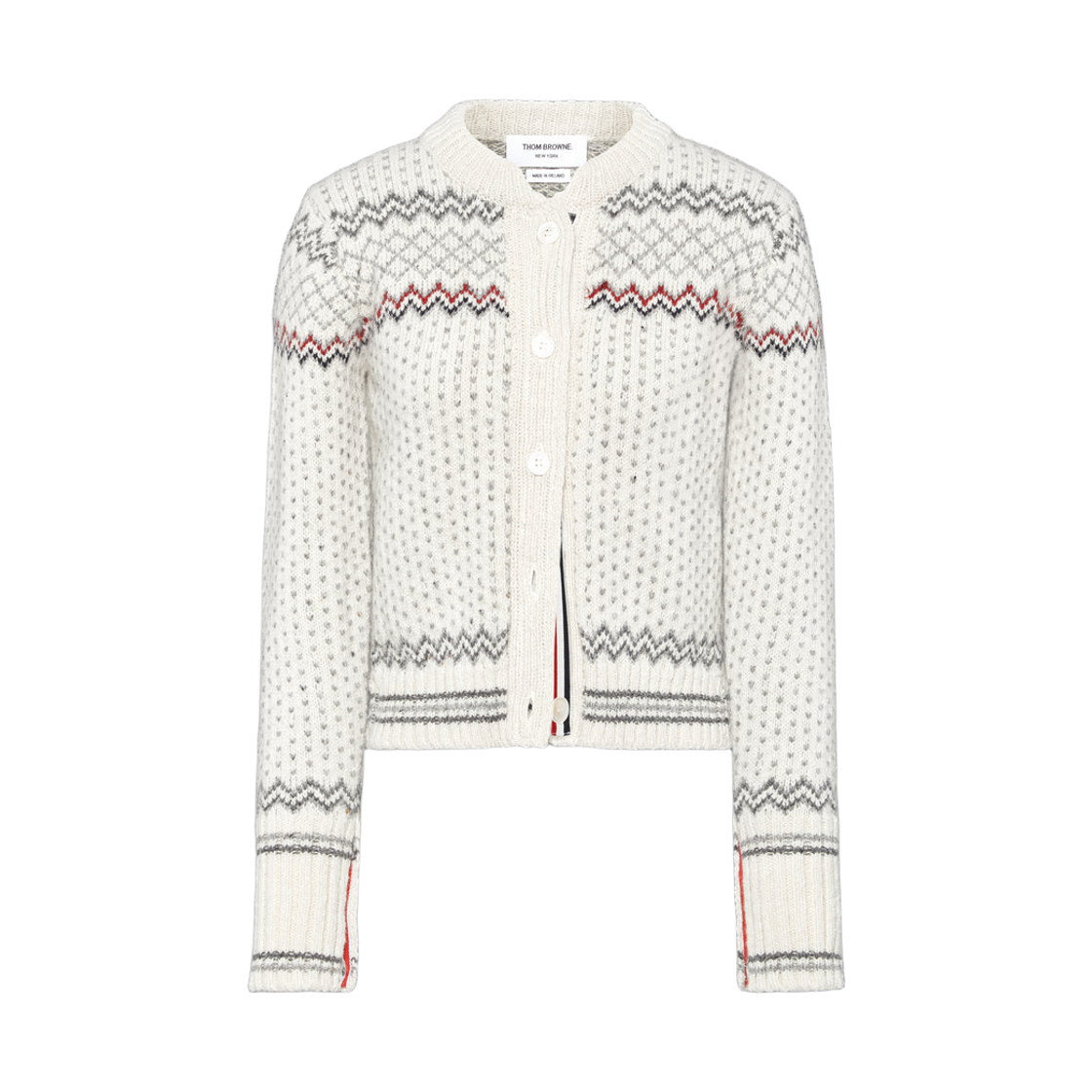 (W) 톰브라운 페어아일 자카드 도네갈 크롭 가디건 화이트