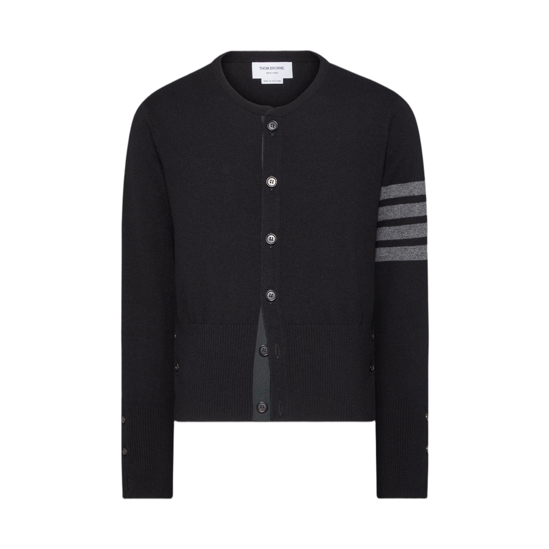 톰브라운 캐시미어 클래식 크루넥 사선 가디건 블랙