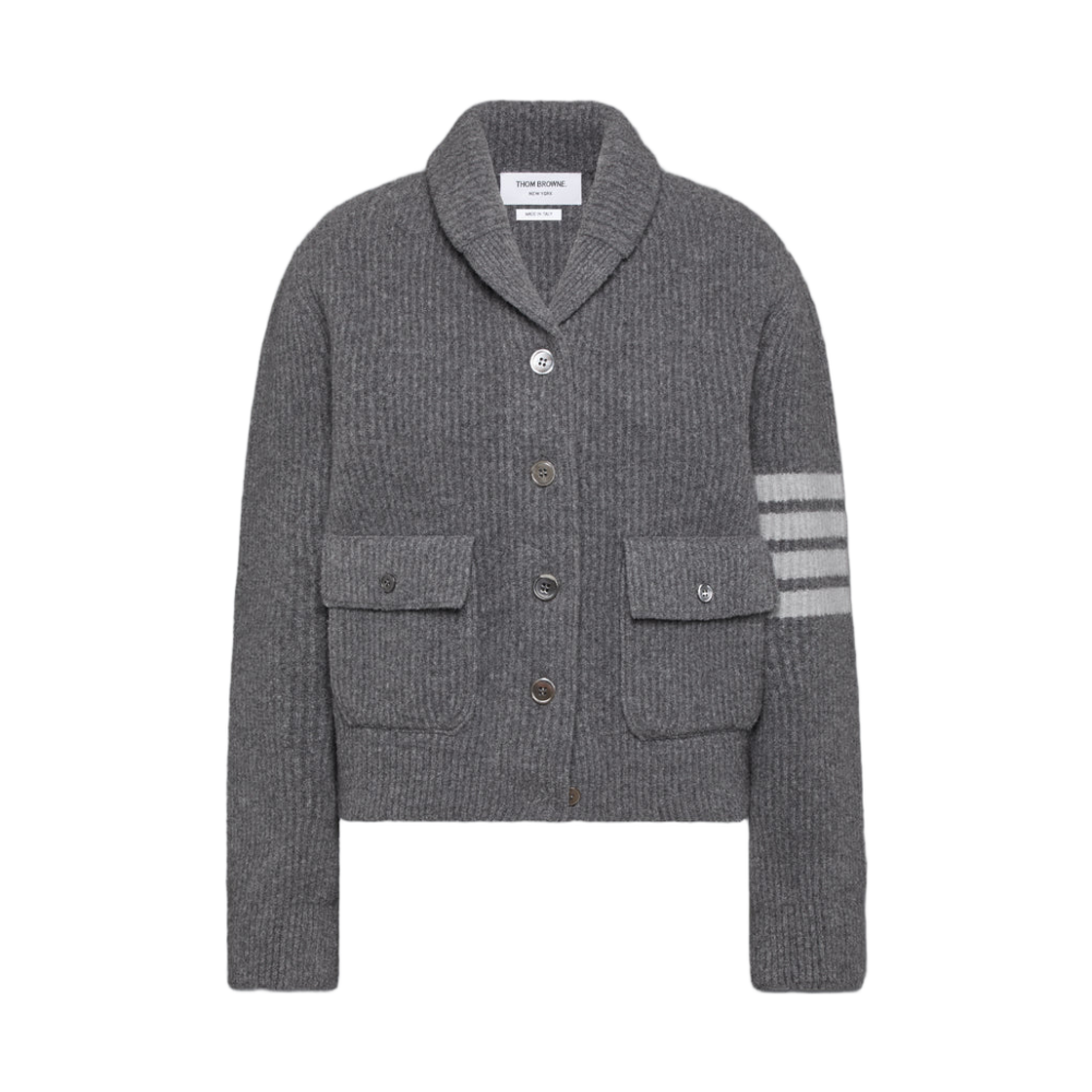 (W) 톰브라운 코튼 크레이프 밀라노 스티치 사선 가디건 미디움 그레이