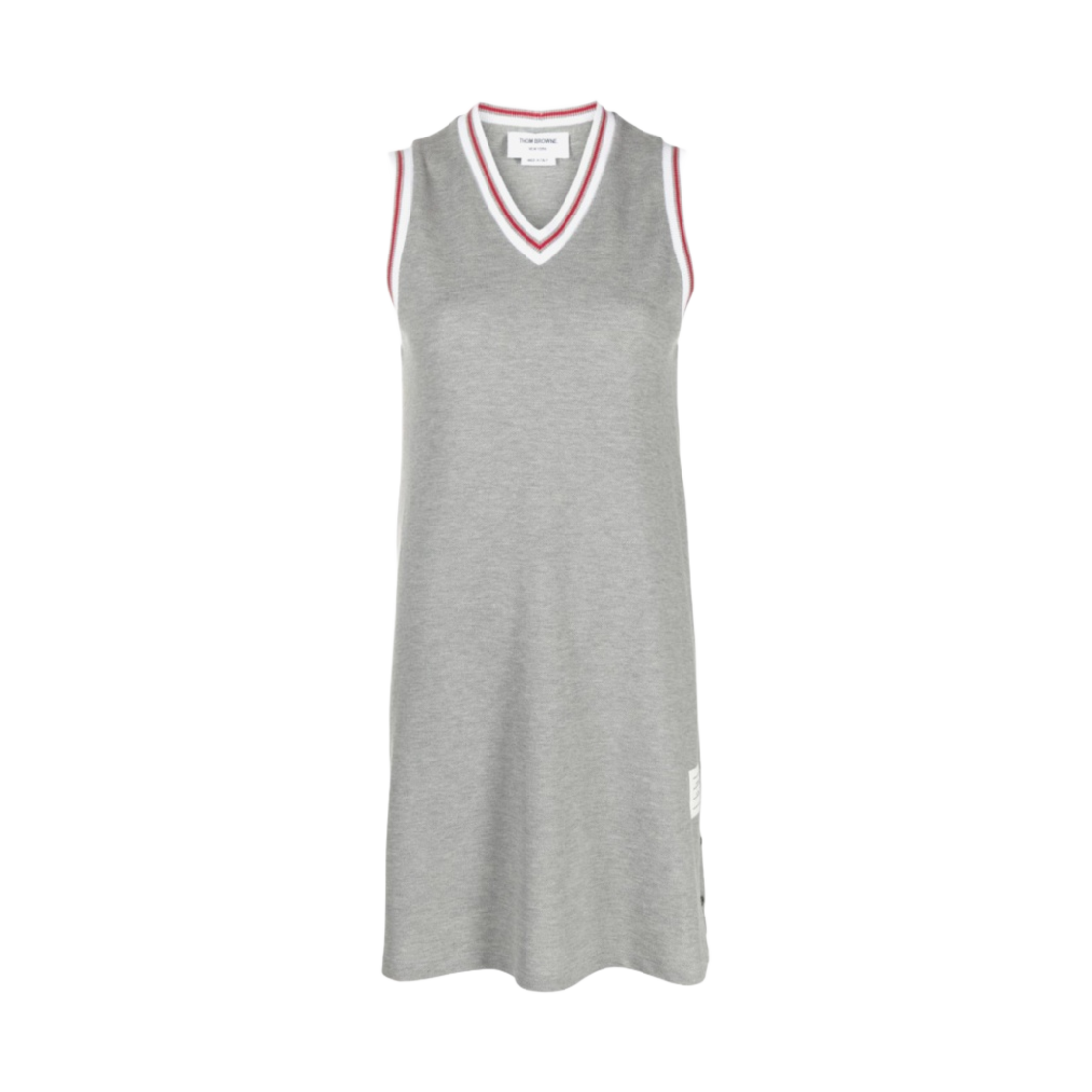 (W) 톰브라운 클래식 피케 스트라이프 브이넥 테니스 드레스 라이트 그레이