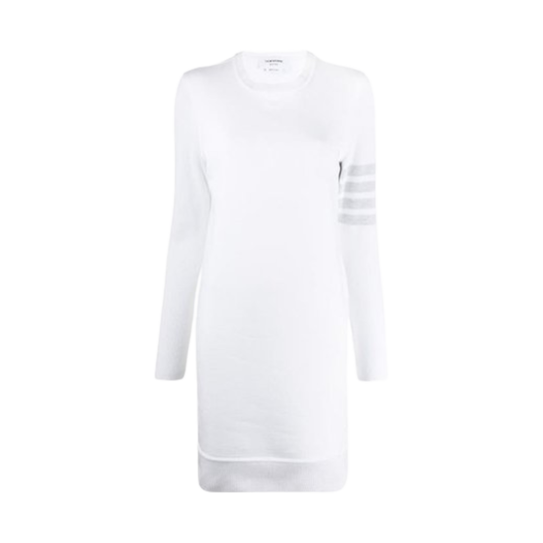 (W) 톰브라운 클래식 루프백 토날 사선 크루넥 스웨터 드레스 화이트