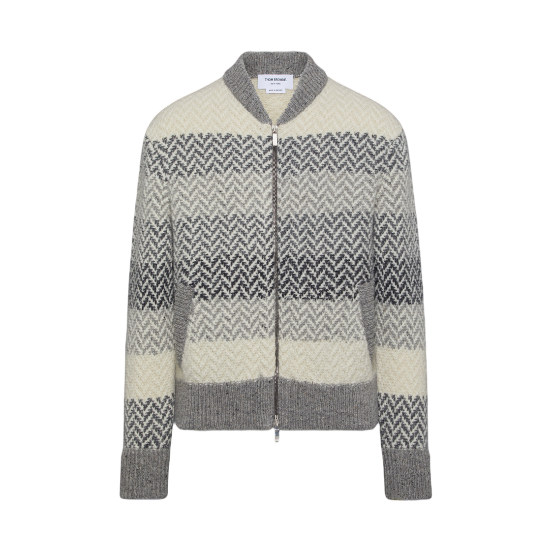 톰브라운 도네갈 앤 쿠셴데일 헤링본 자카드 봄버 자켓 토날 그레이
