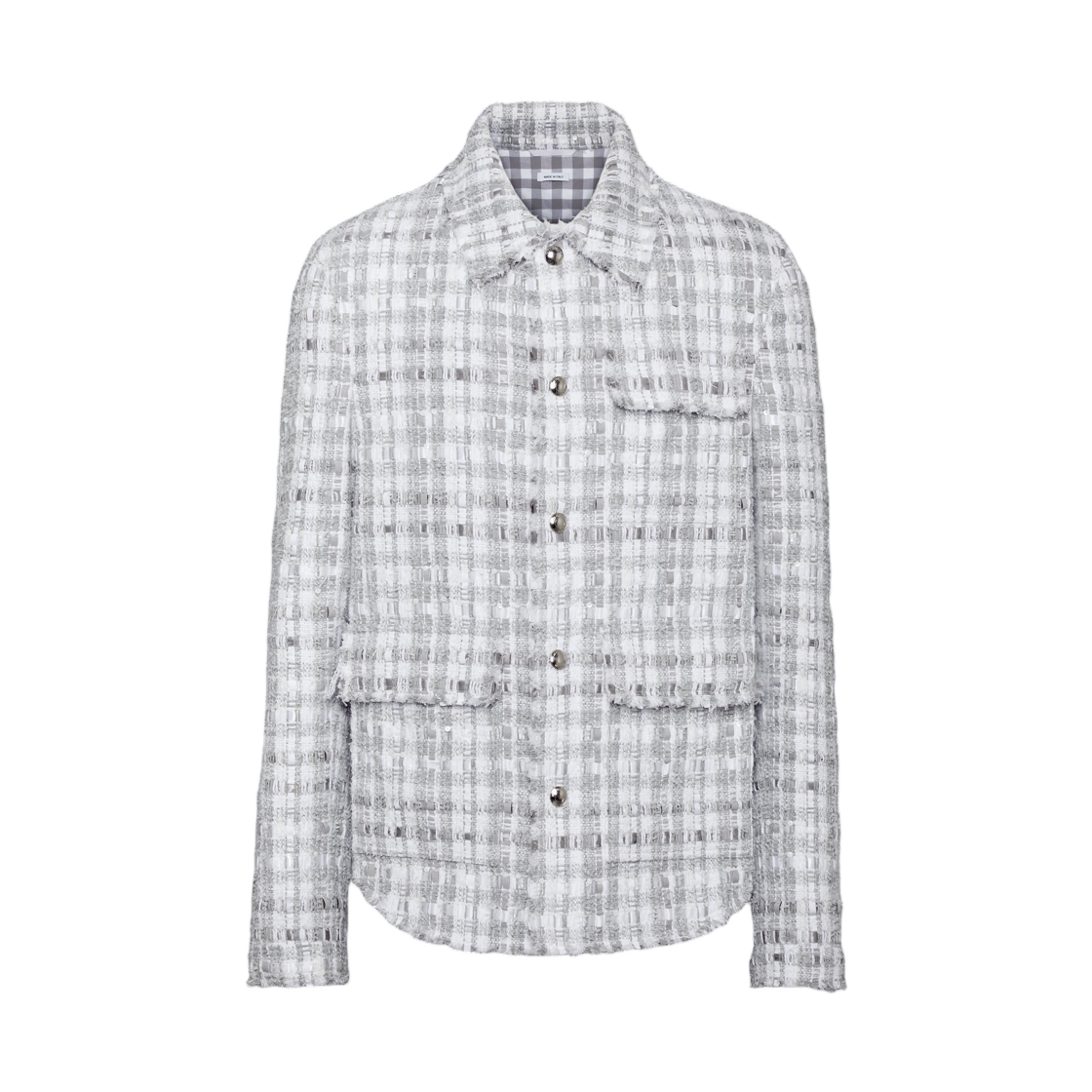 톰브라운 깅엄 트위드 유틸리티 자켓 메드 그레이