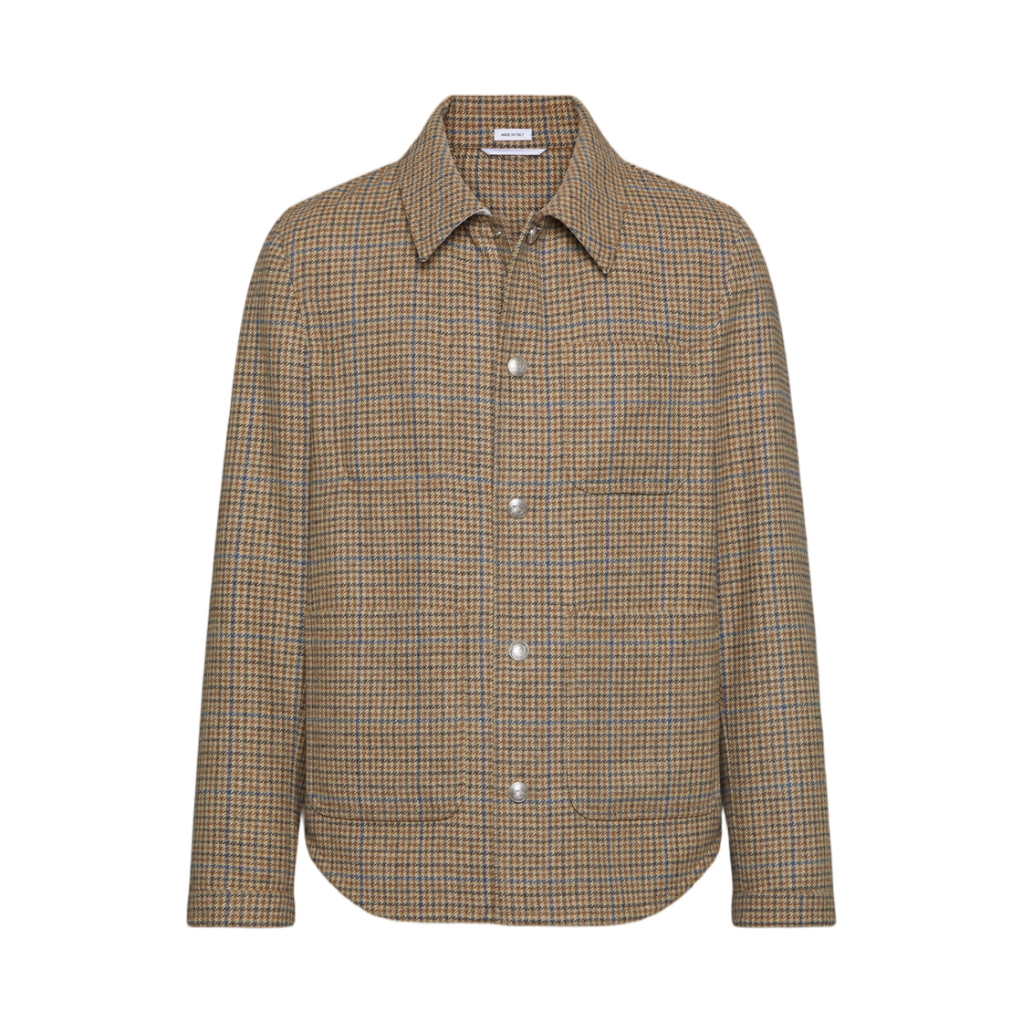 톰브라운 건클럽 체크 체비엇 트위드 유틸리티 자켓 브라운