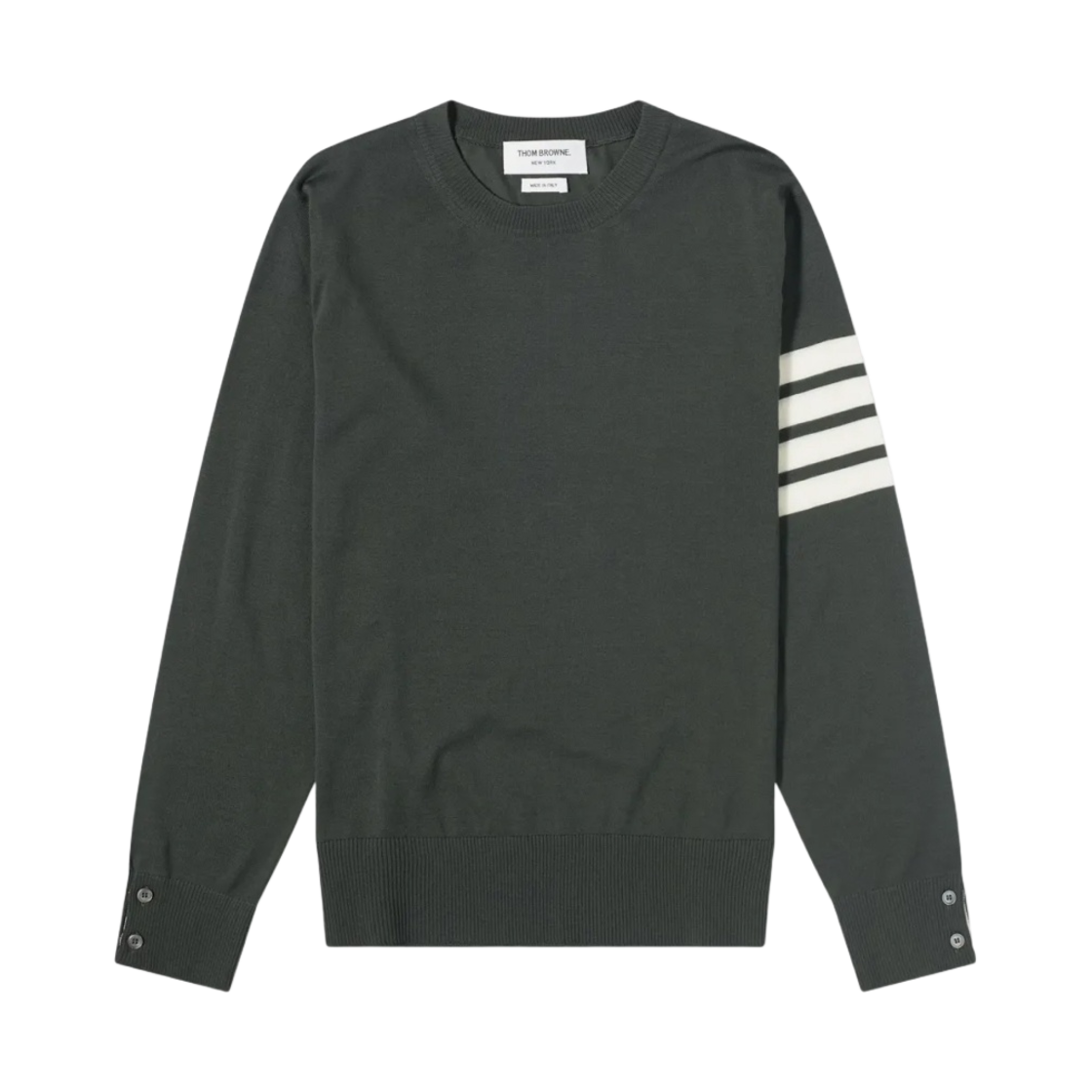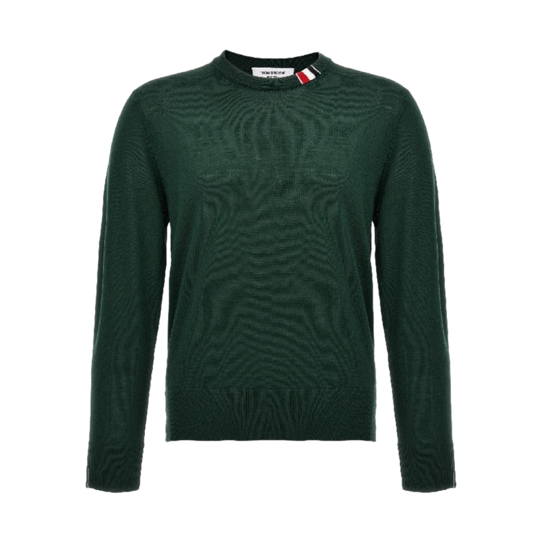 톰브라운 파인 메리노 울 스티치 사선 클래식 크루넥 풀오버 니트 다크 그린