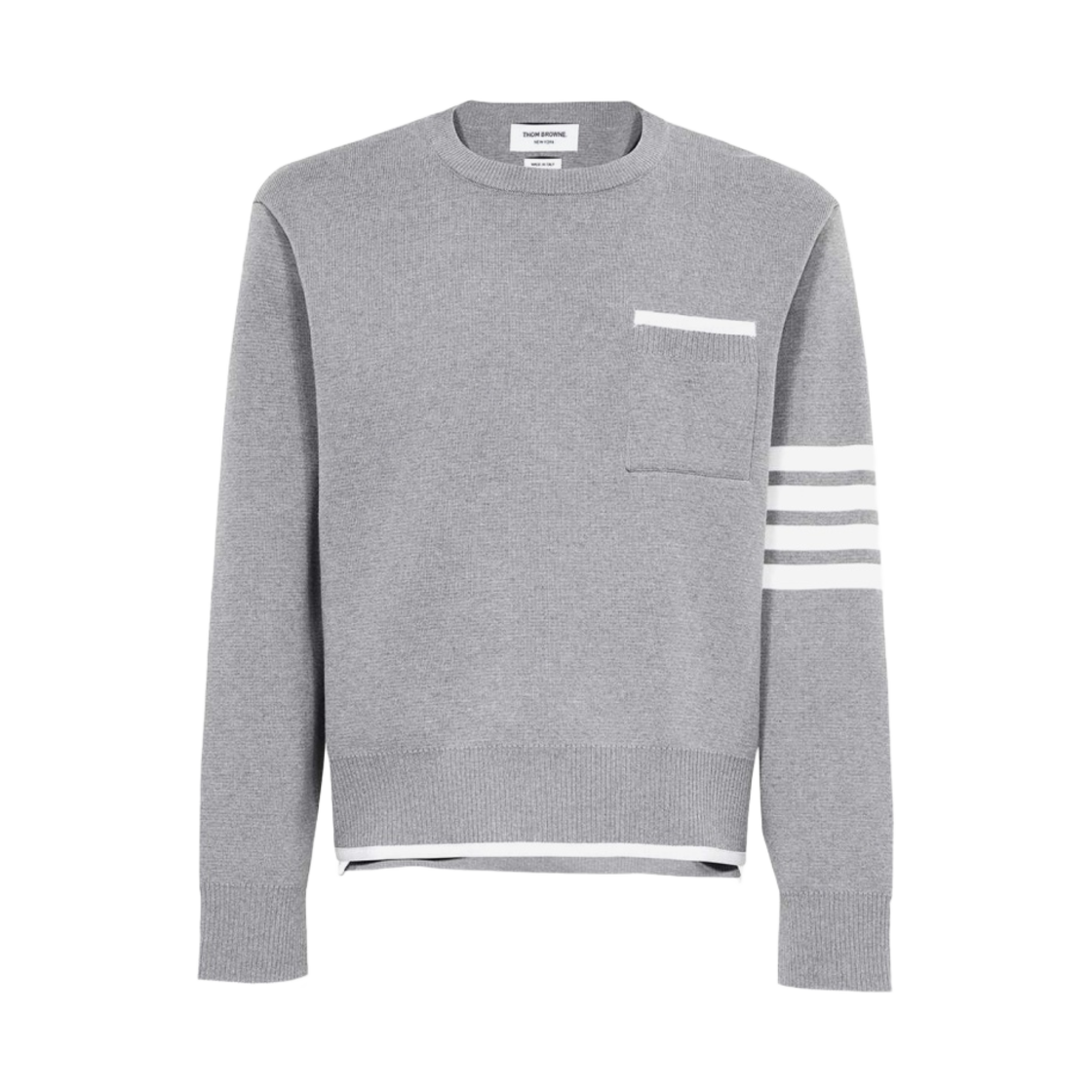 톰브라운 파인 메리노 울 스티치 사선 클래식 크루넥 풀오버 니트 페일 그레이