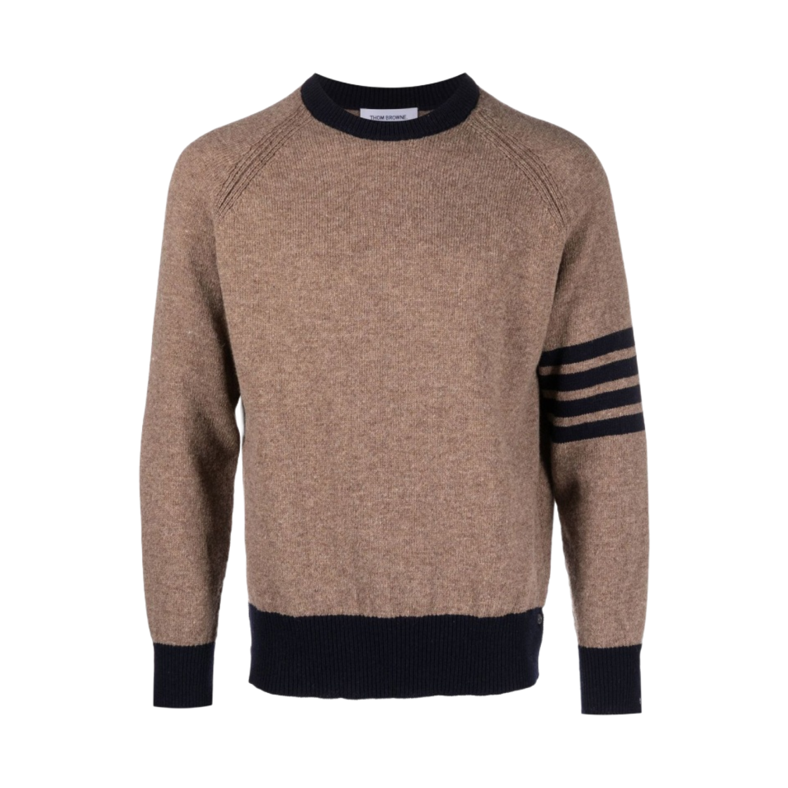 톰브라운 셰틀랜드 울 래글런 사선 크루넥 풀오버 미디움 브라운