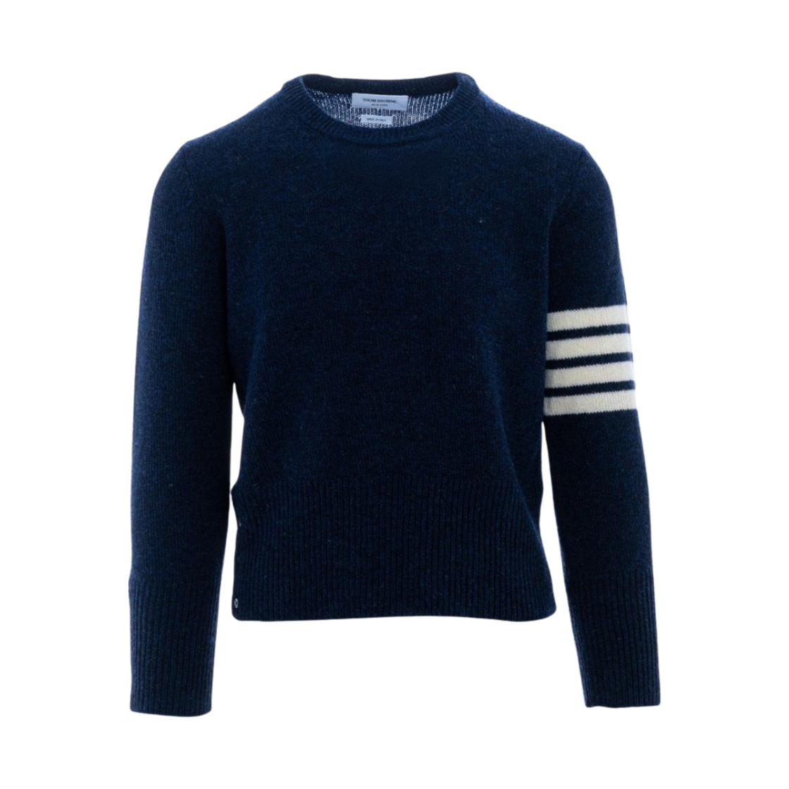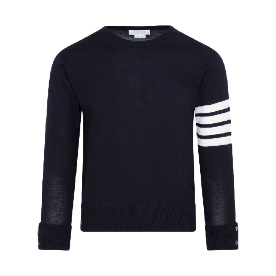 톰브라운 파인 메리노 울 화이트 사선 클래식 크루넥 풀오버 네이비