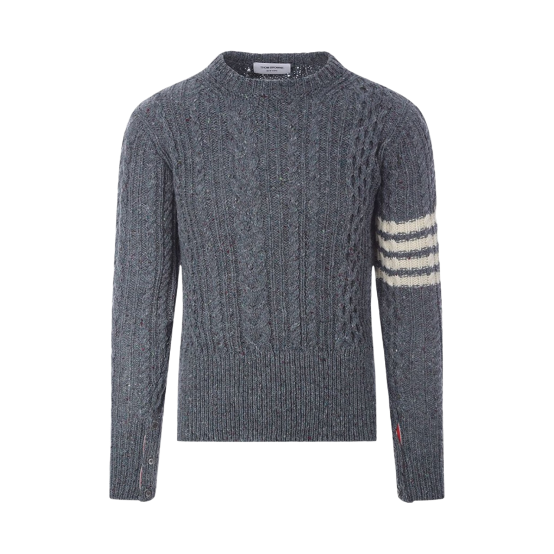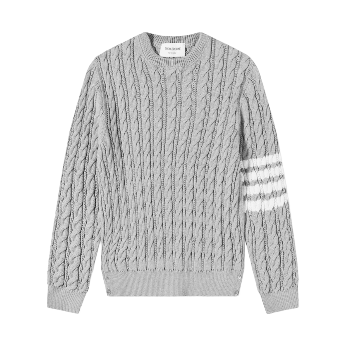톰브라운 도네갈 트위스트 케이블 사선 클래식 크루넥 풀오버 라이트 그레이