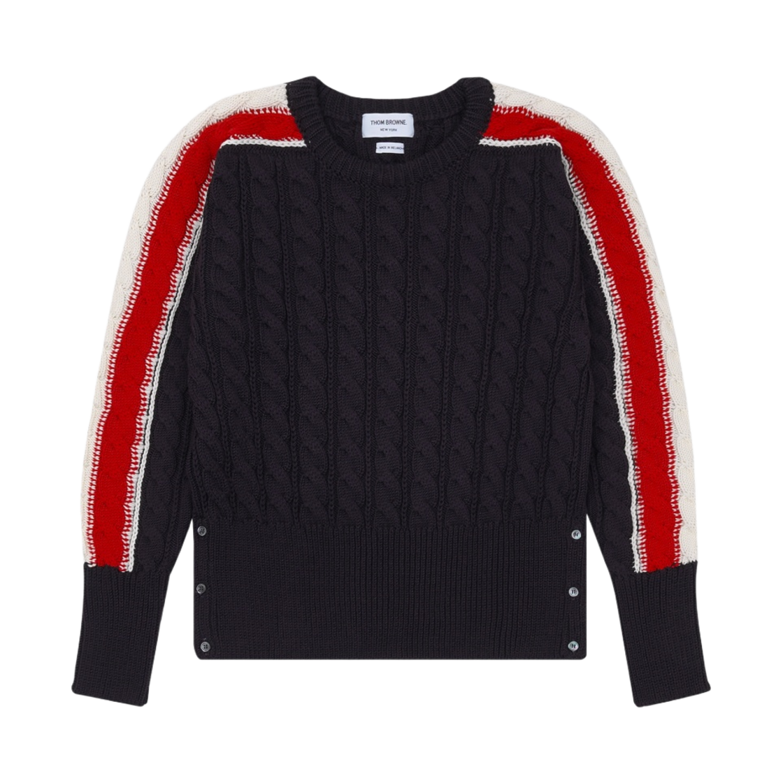 톰브라운 사이드 RWB 케이블 스티치 메리노 울 스트라이프 풀오버 니트 네이비