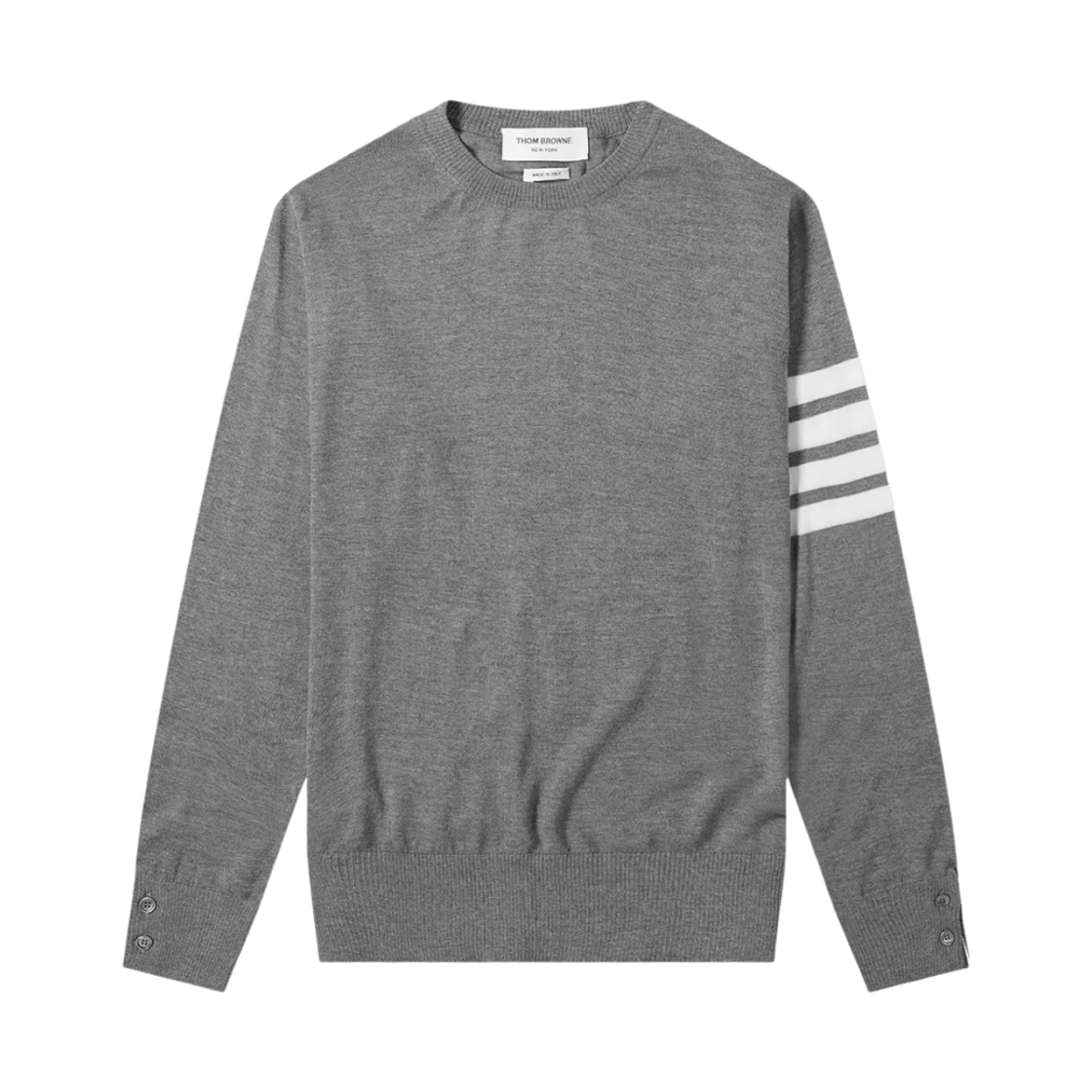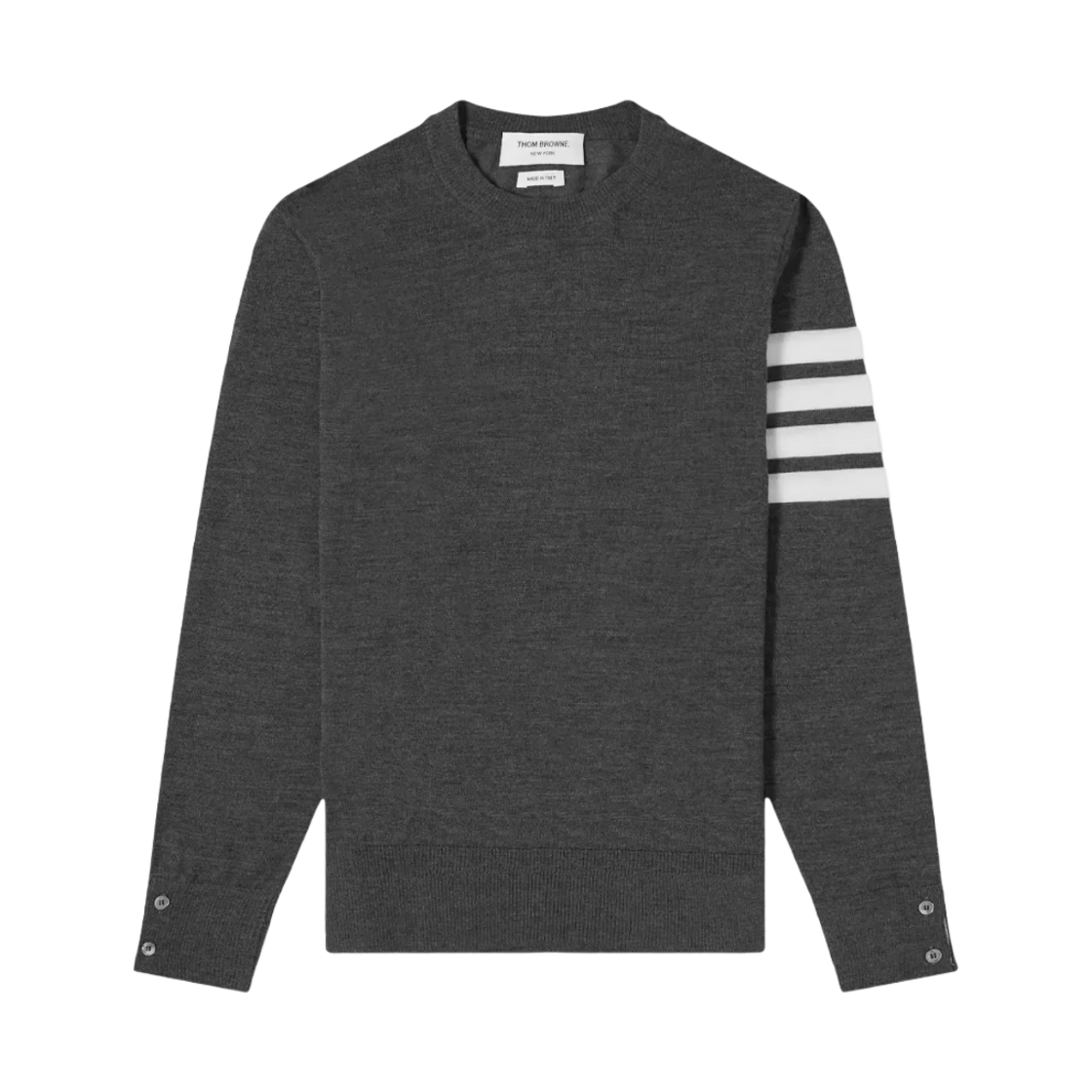톰브라운 파인 메리노 울 스티치 사선 클래식 크루넥 풀오버 니트 미디움 그레이