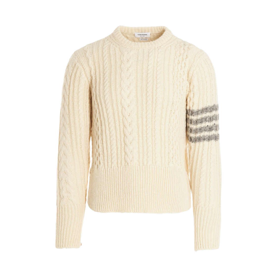 톰브라운 도네갈 트위스트 케이블 사선 클래식 크루넥 풀오버 라이트 그레이