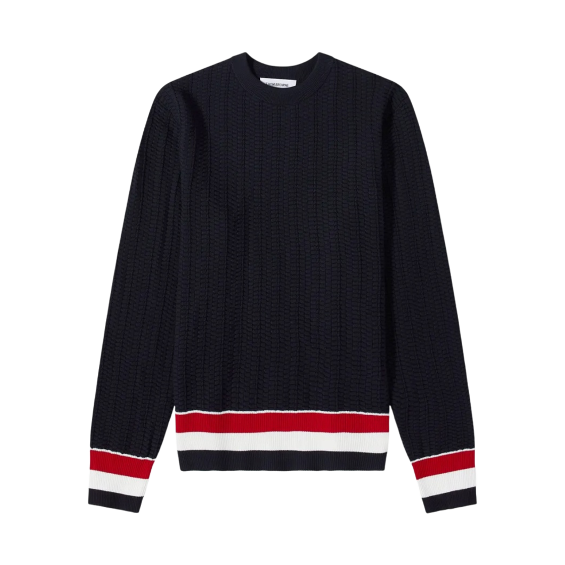 톰브라운 텍스쳐드 코튼 RWB 립 풀오버 네이비