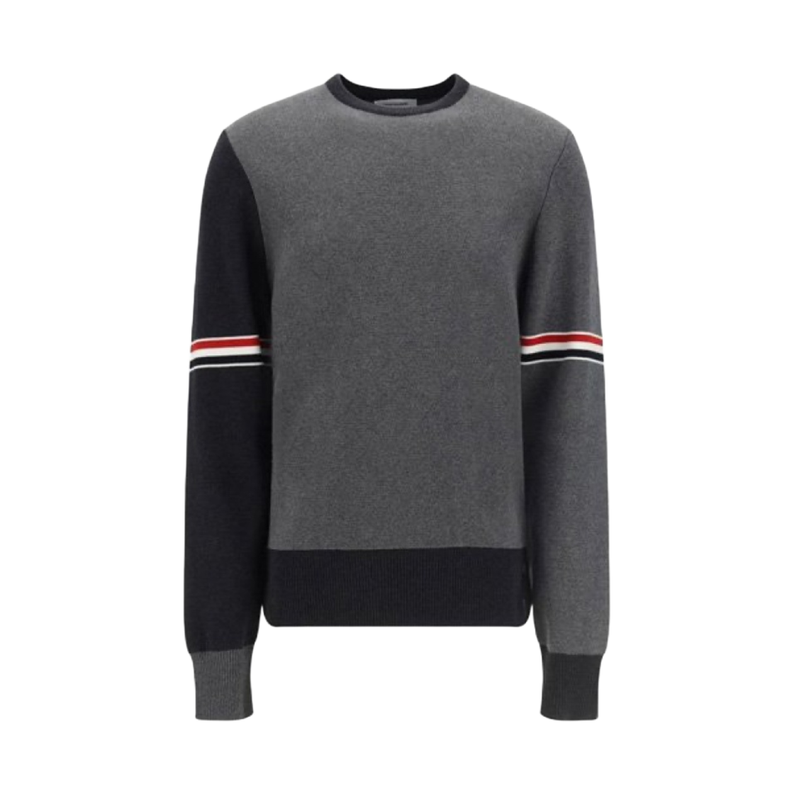 톰브라운 코튼 밀라노 스티치 스트라이프 암밴드 크루넥 스웨터 라이트 그레이