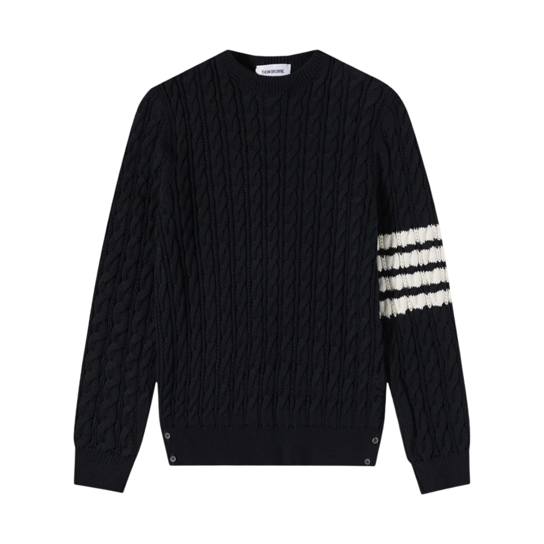 톰브라운 도네갈 바이컬러 트위스트 케이블 사선 크루넥 풀오버 네이비
