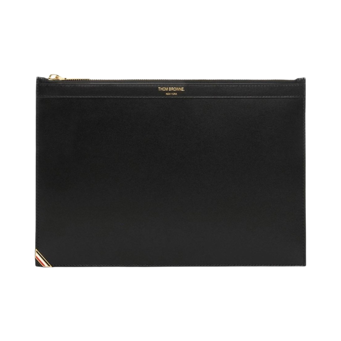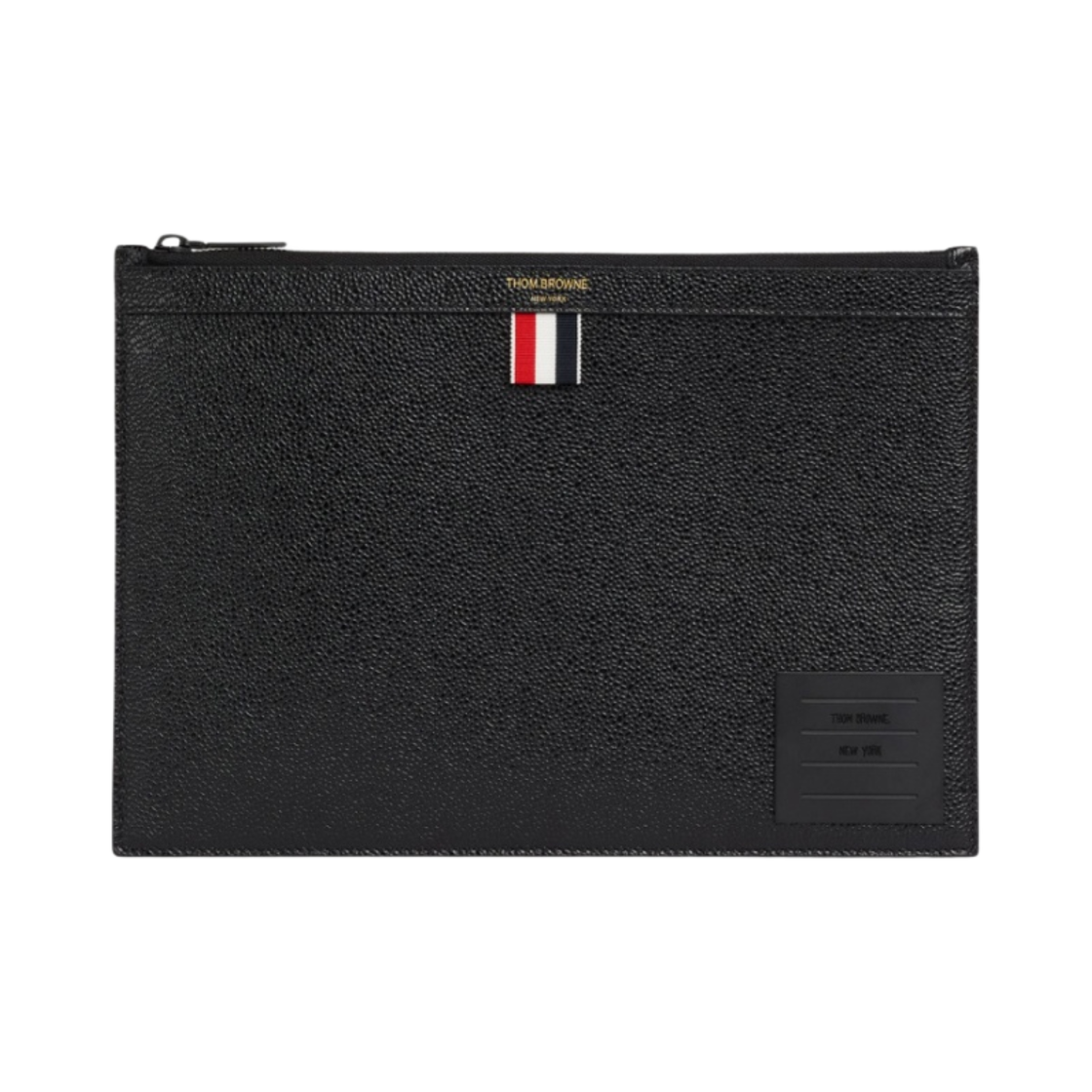 톰브라운 페블 그레인 레더 사선 브래스 라벨 미디움 지퍼 도큐먼트 홀더 블랙