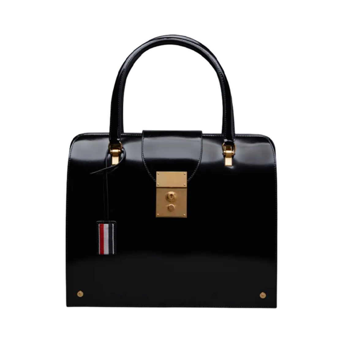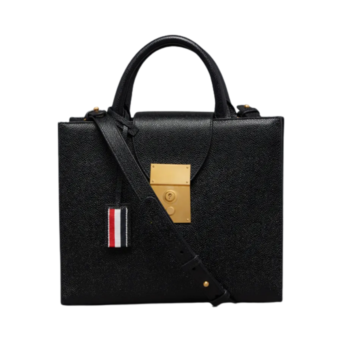 톰브라운 트라페즈 그레인 탑 핸들 토트백 블랙