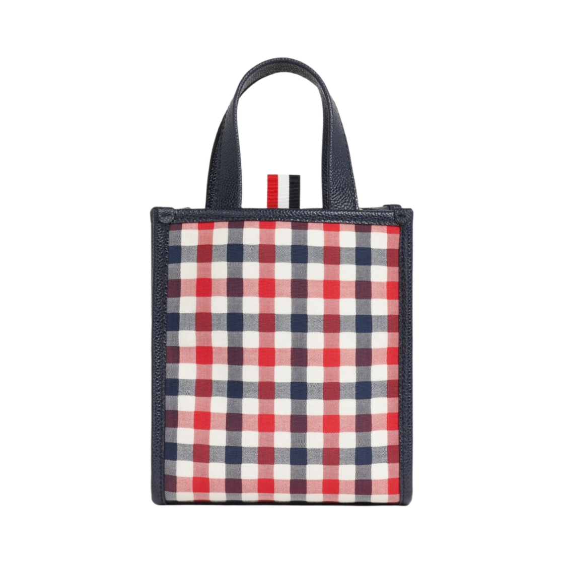 톰브라운 헤어라인 마드라스 체크 수팅 웨빙 스트라이프 버티컬 토트백 트리컬러
