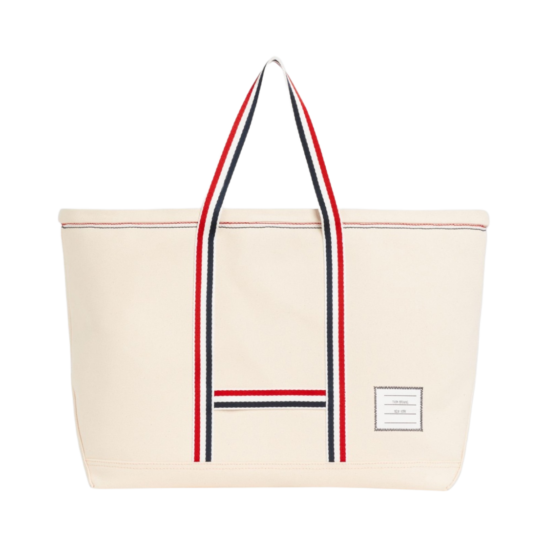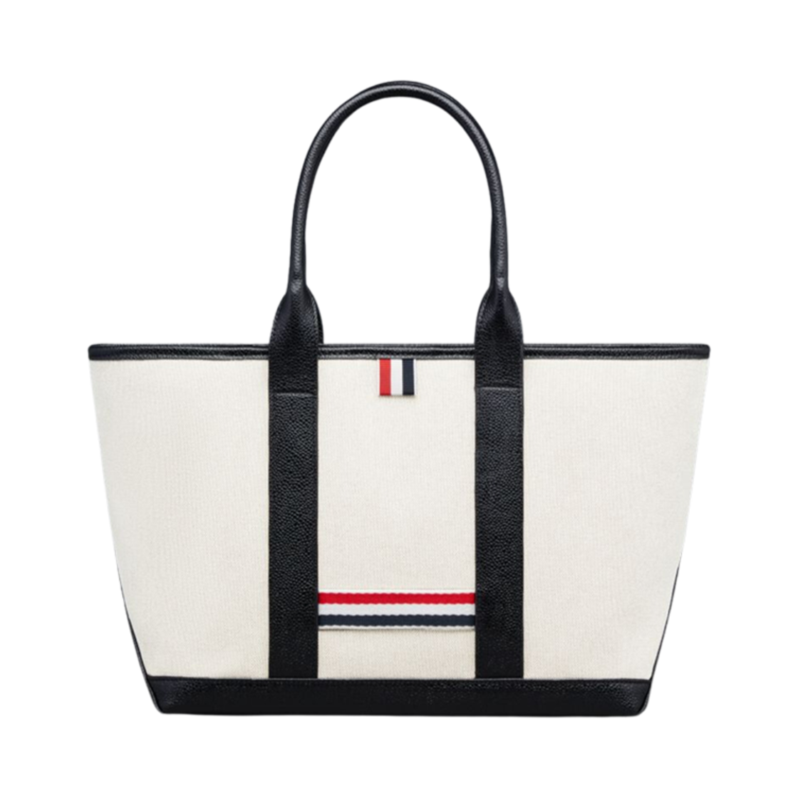 톰브라운 더블 페이스 코튼 캔버스 미디움 툴 토트백 오프 화이트
