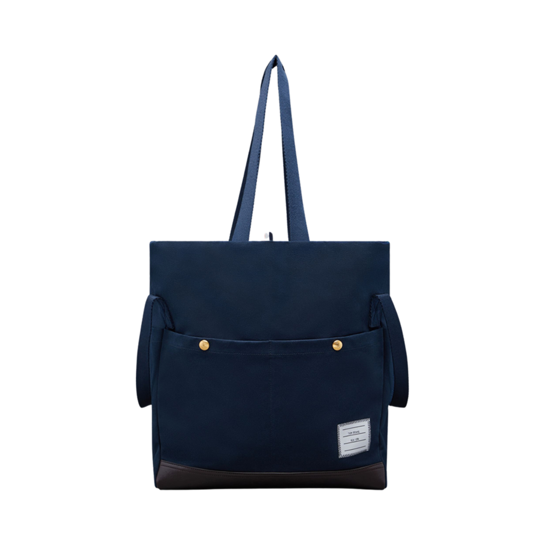 톰브라운 코튼 캔버스 스냅 포켓 토트백 네이비