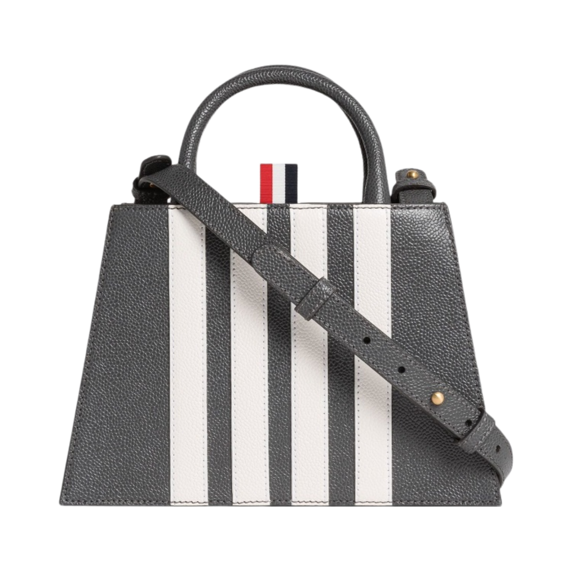 톰브라운 페블 그레인 레더 사선 미니 트라페즈 토트백 다크 그레이