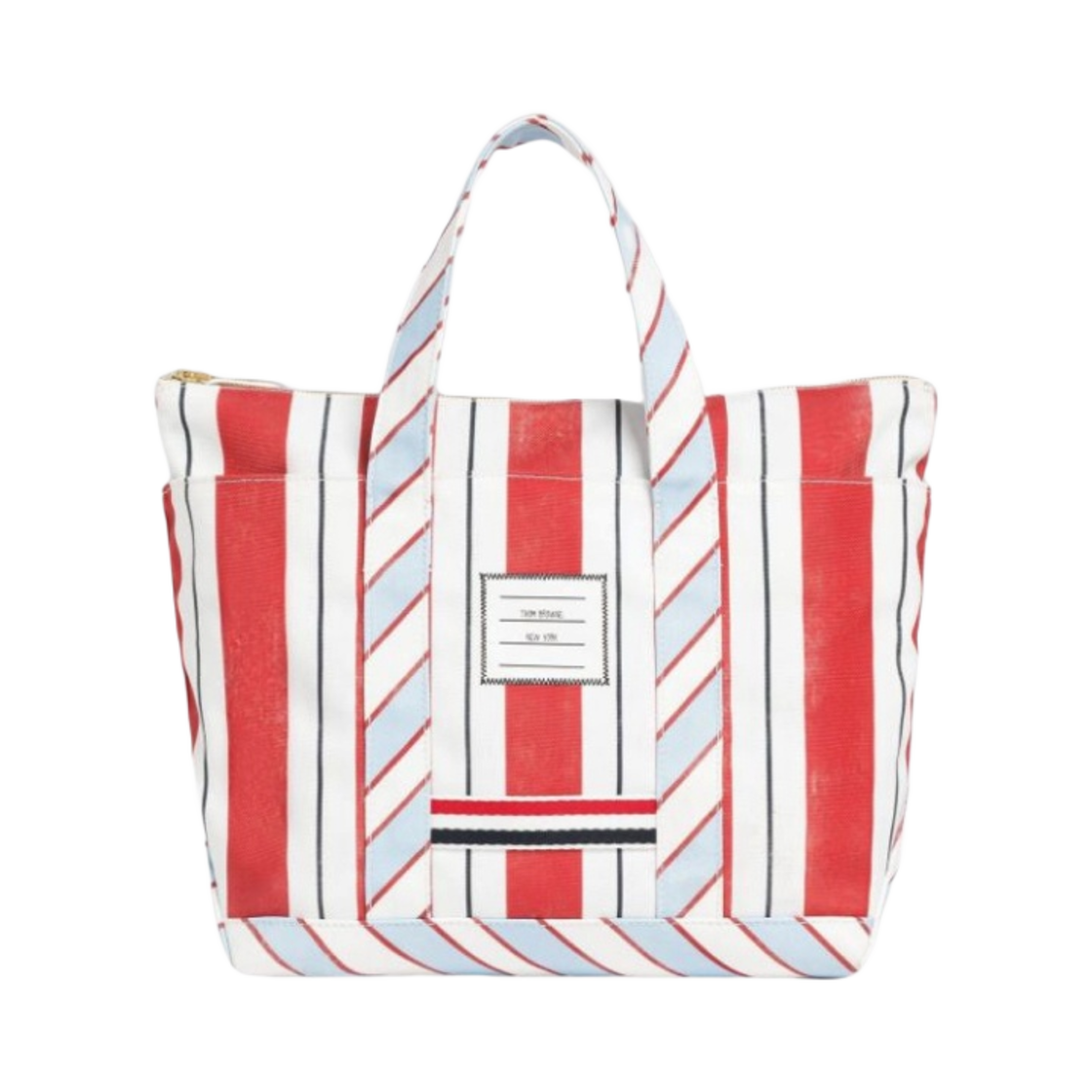 톰브라운 워시드 스트라이프 캔버스 스몰 툴 토트백 레드