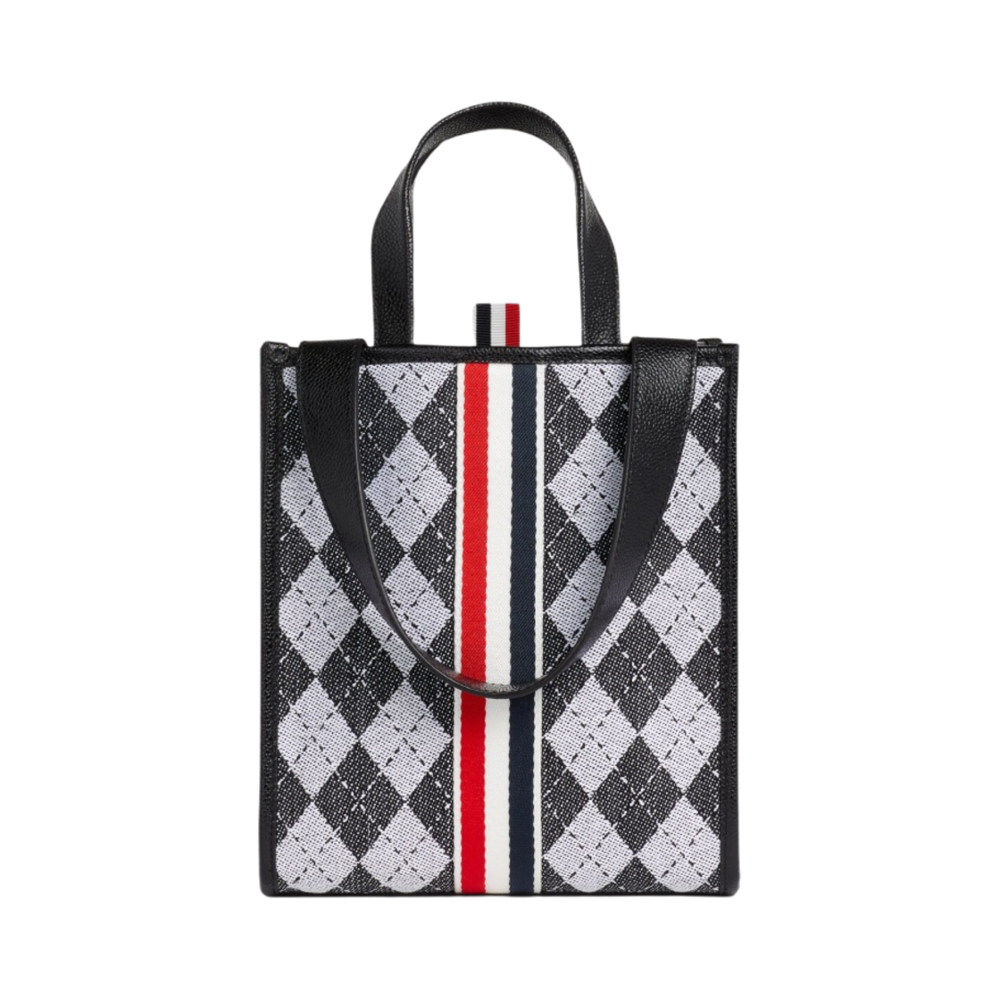 톰브라운 아가일 울 코튼 자카드 웨빙 스트라이프 숄더 스트랩 스몰 토트백 블랙 화이트