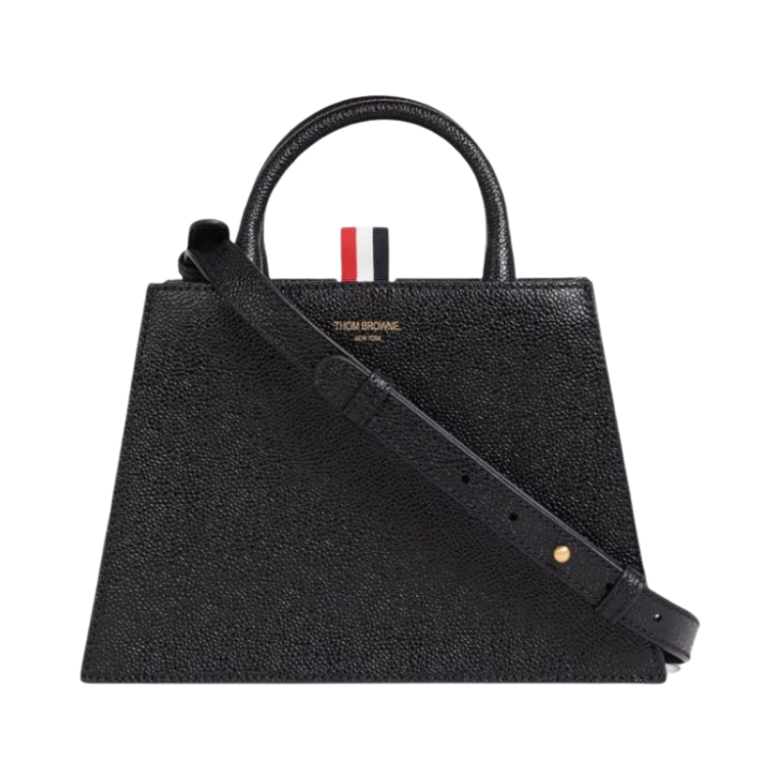 톰브라운 페블 그레인 레더 미디움 트라페즈 토트백 블랙
