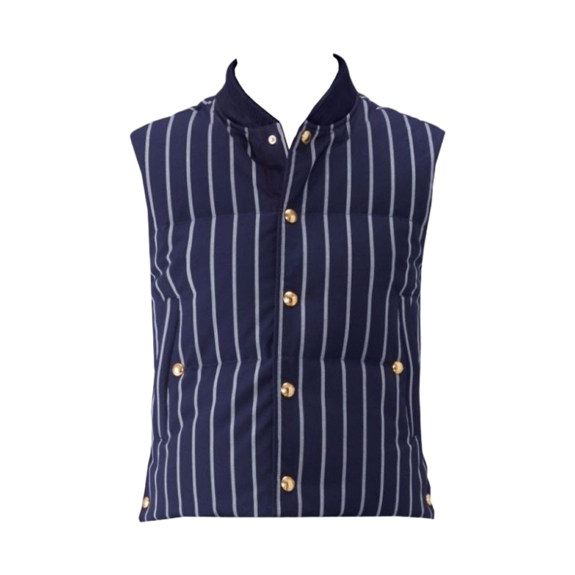 톰브라운 스트라이프 울 다운필 베스트 네이비