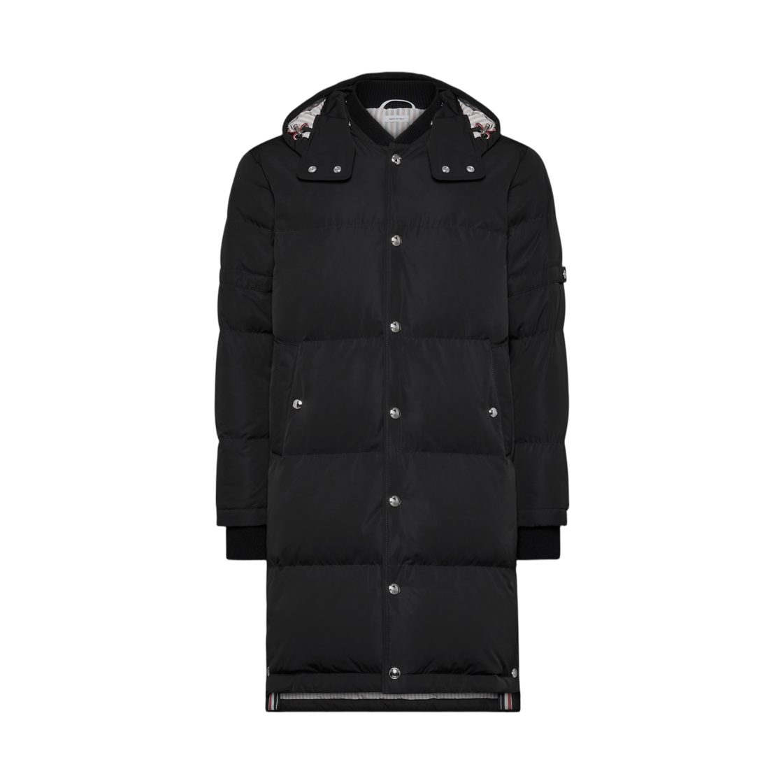 톰브라운 매트 나일론 사선 다운 필드 스냅 프론트 코트 블랙