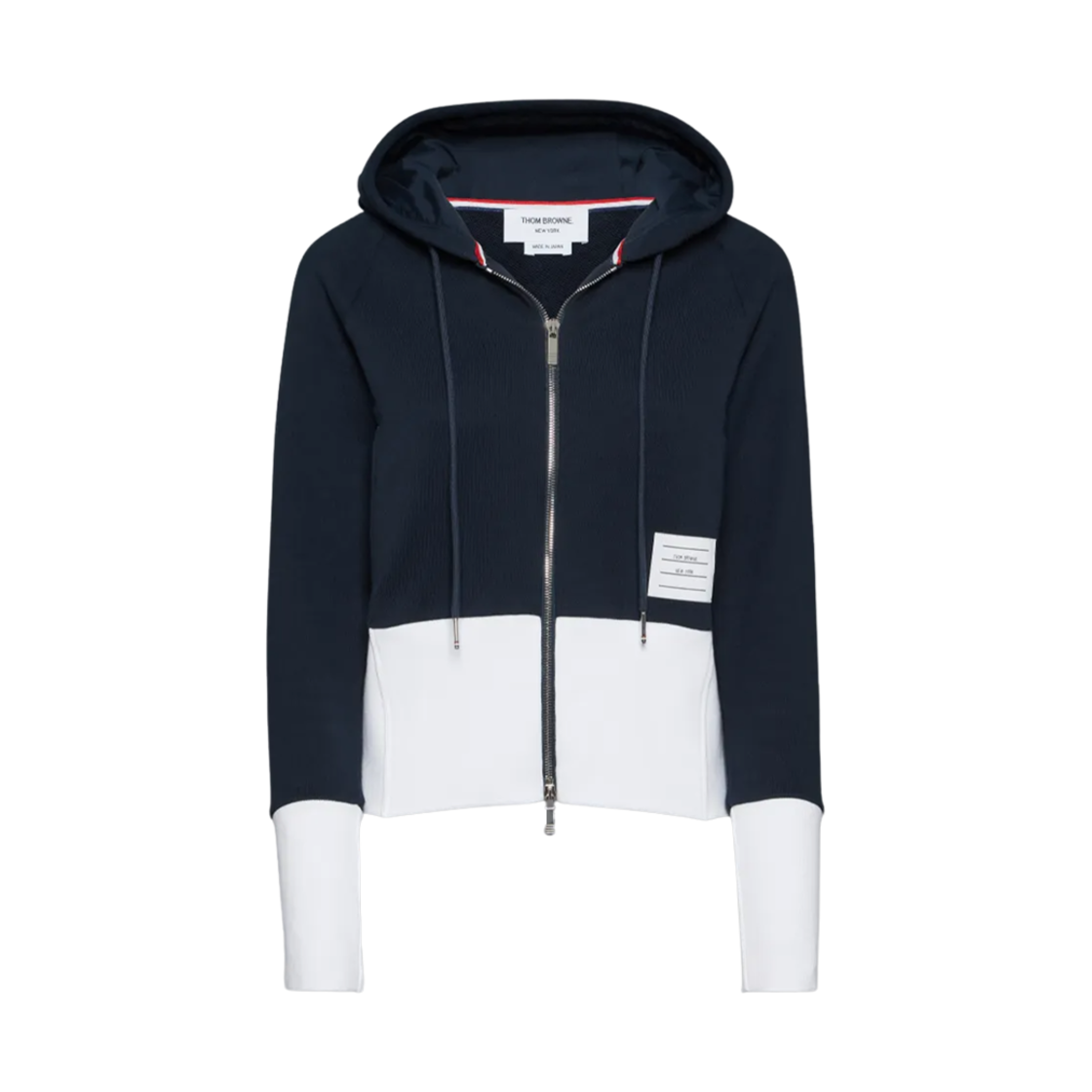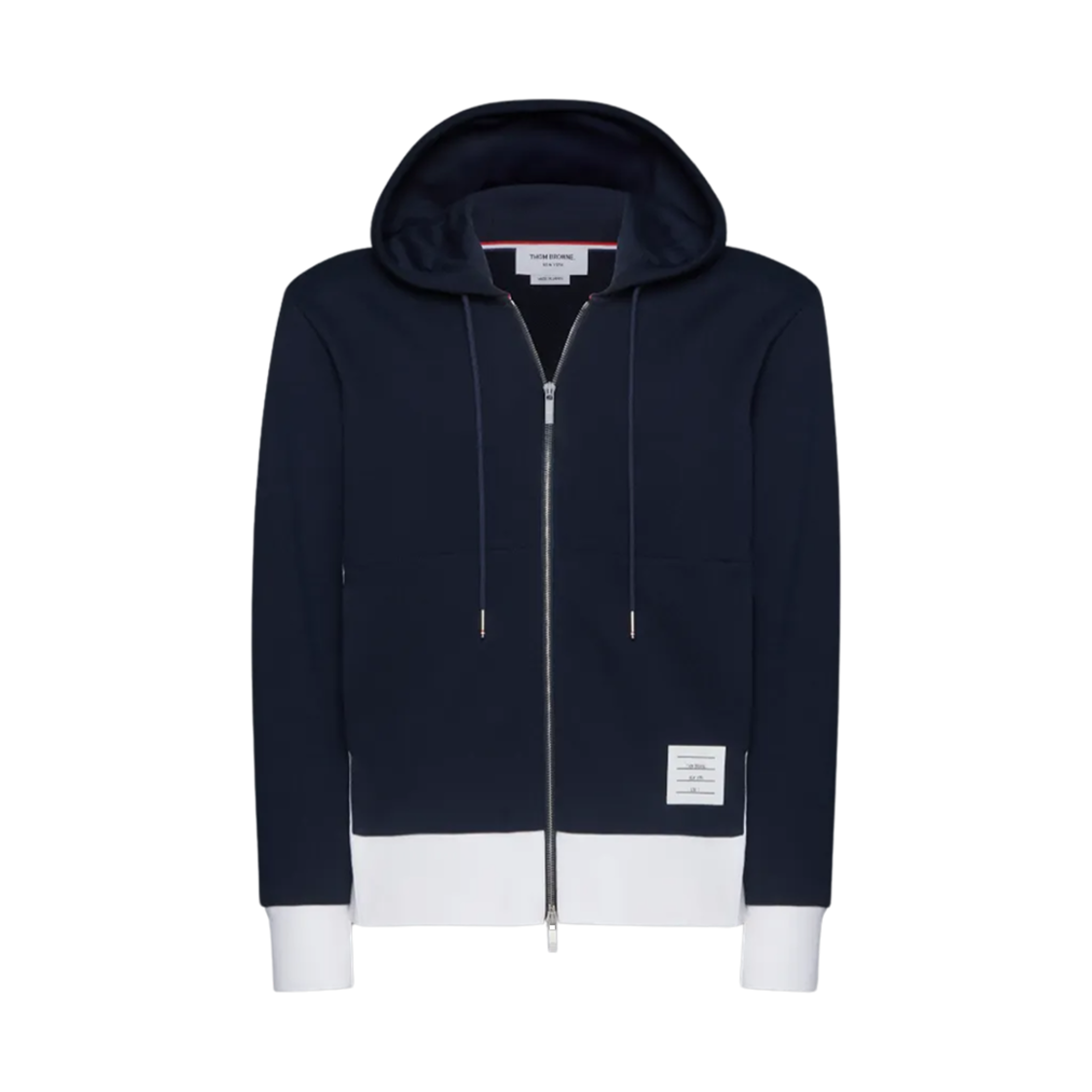 톰브라운 라이트웨이트 앵커 루프백 사선 후드 집업 네이비