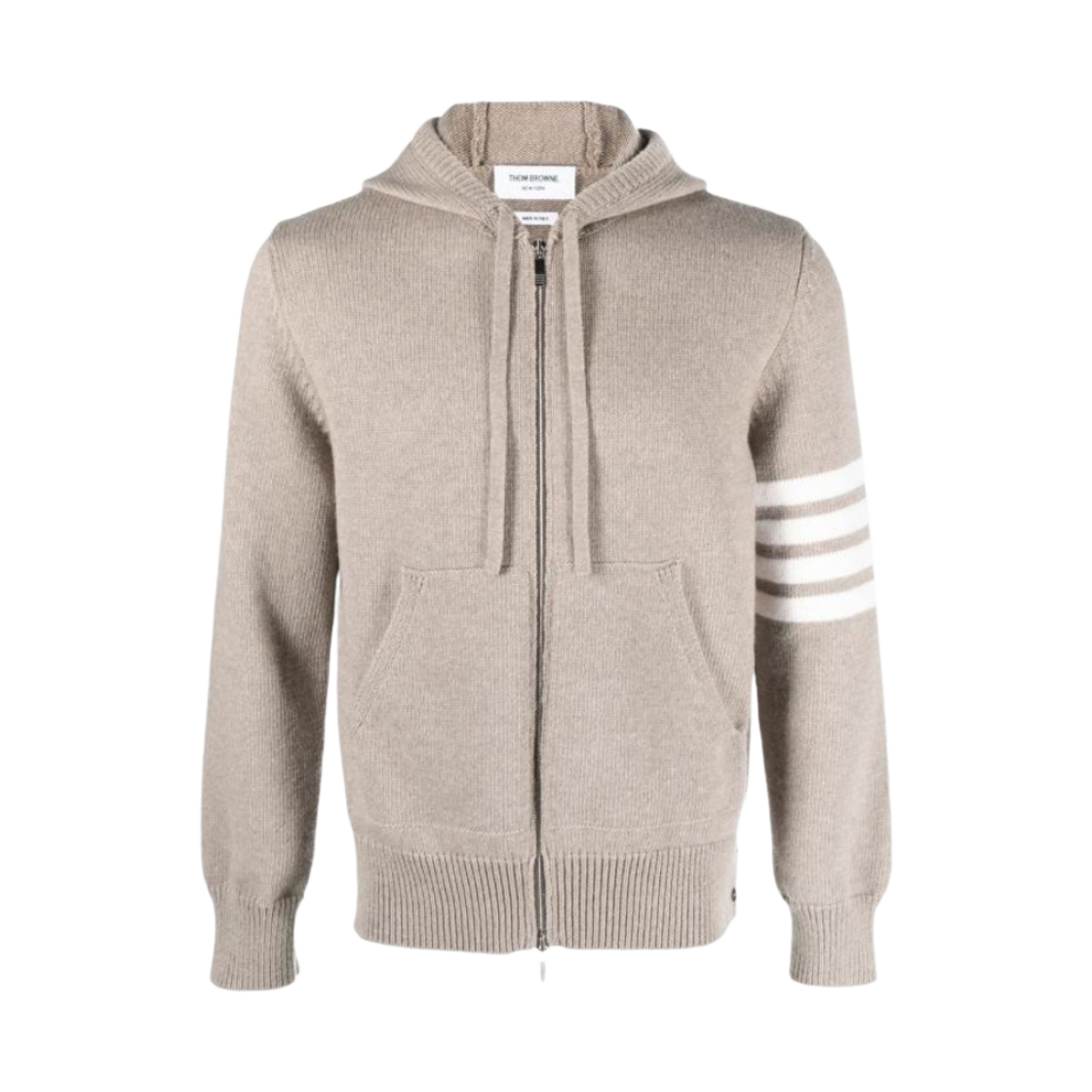 톰브라운 캐시미어 스트라이프 집 프론트 후드 라이트 그레이