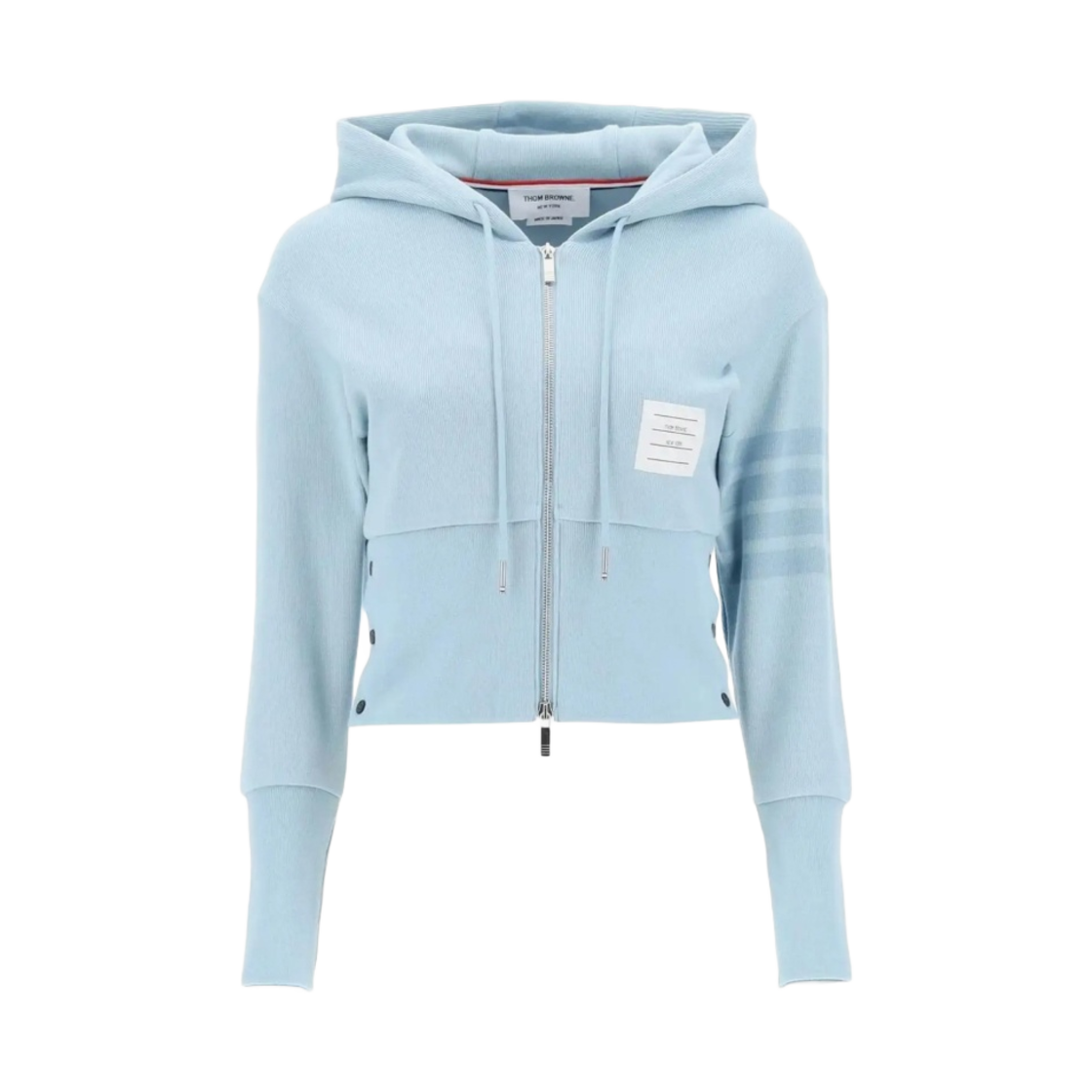 (W) 톰브라운 더블 페이스 니트 사선 집업 후드 라이트 블루