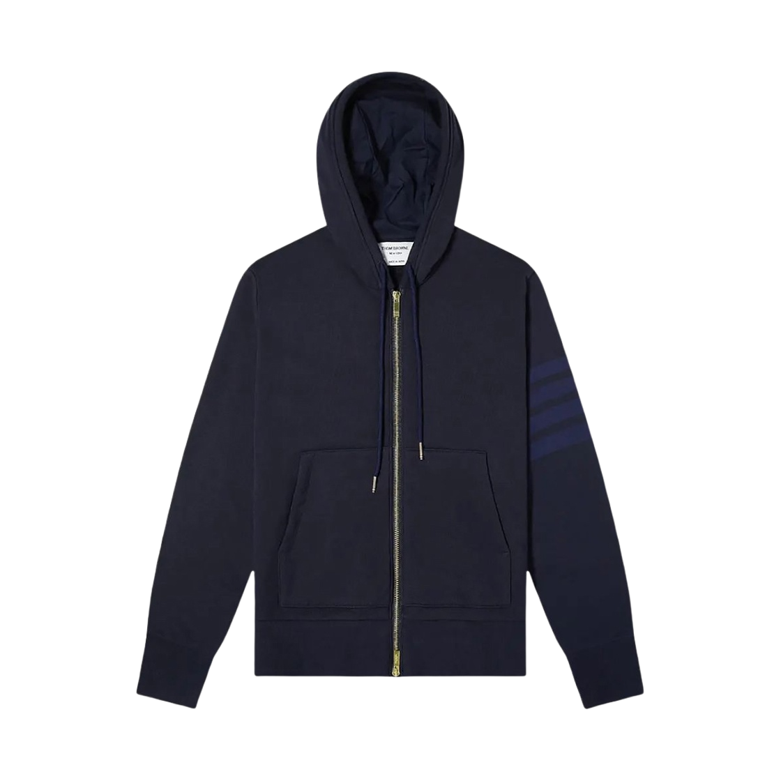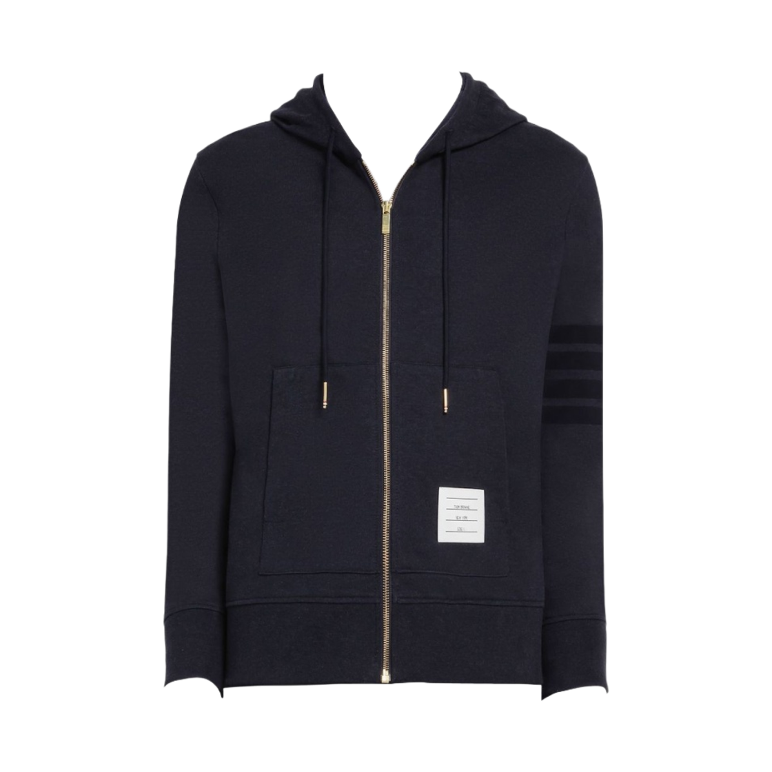 톰브라운 코튼 루프백 센터 백 스트라이프 후드 집업 네이비