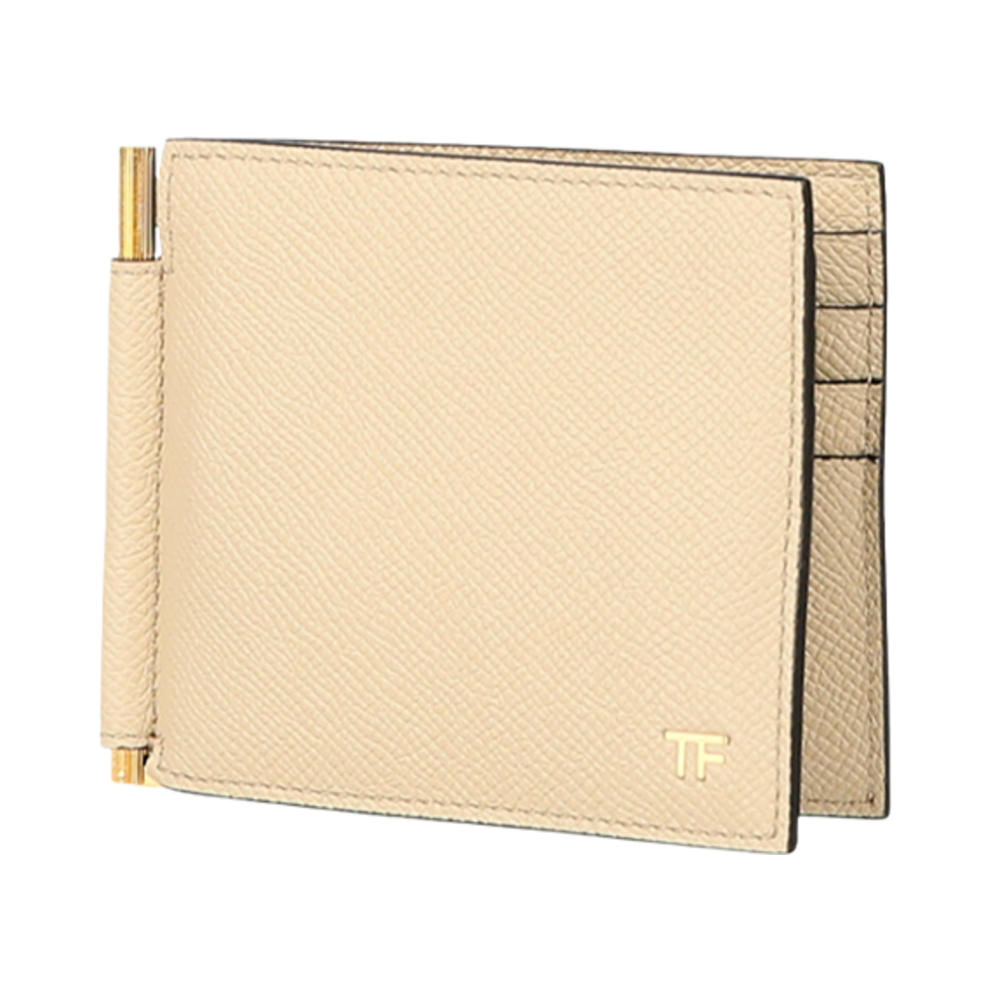 톰포드 스몰 그레인 레더 머니 클립 월렛 베이지