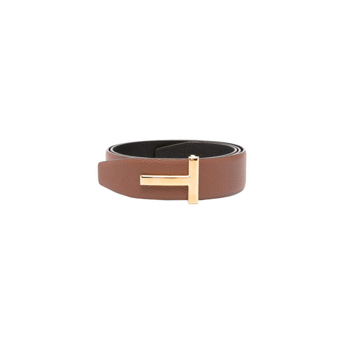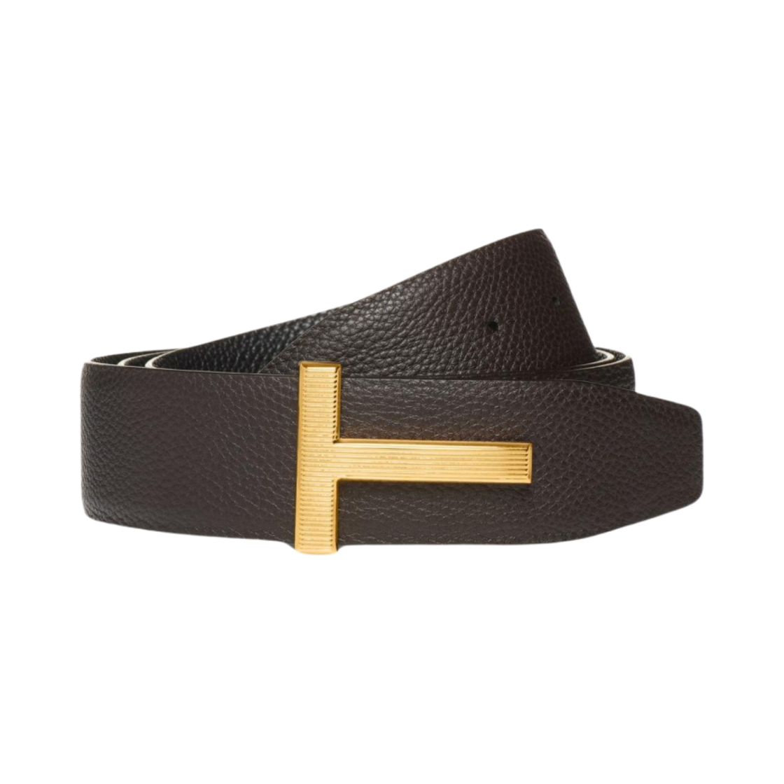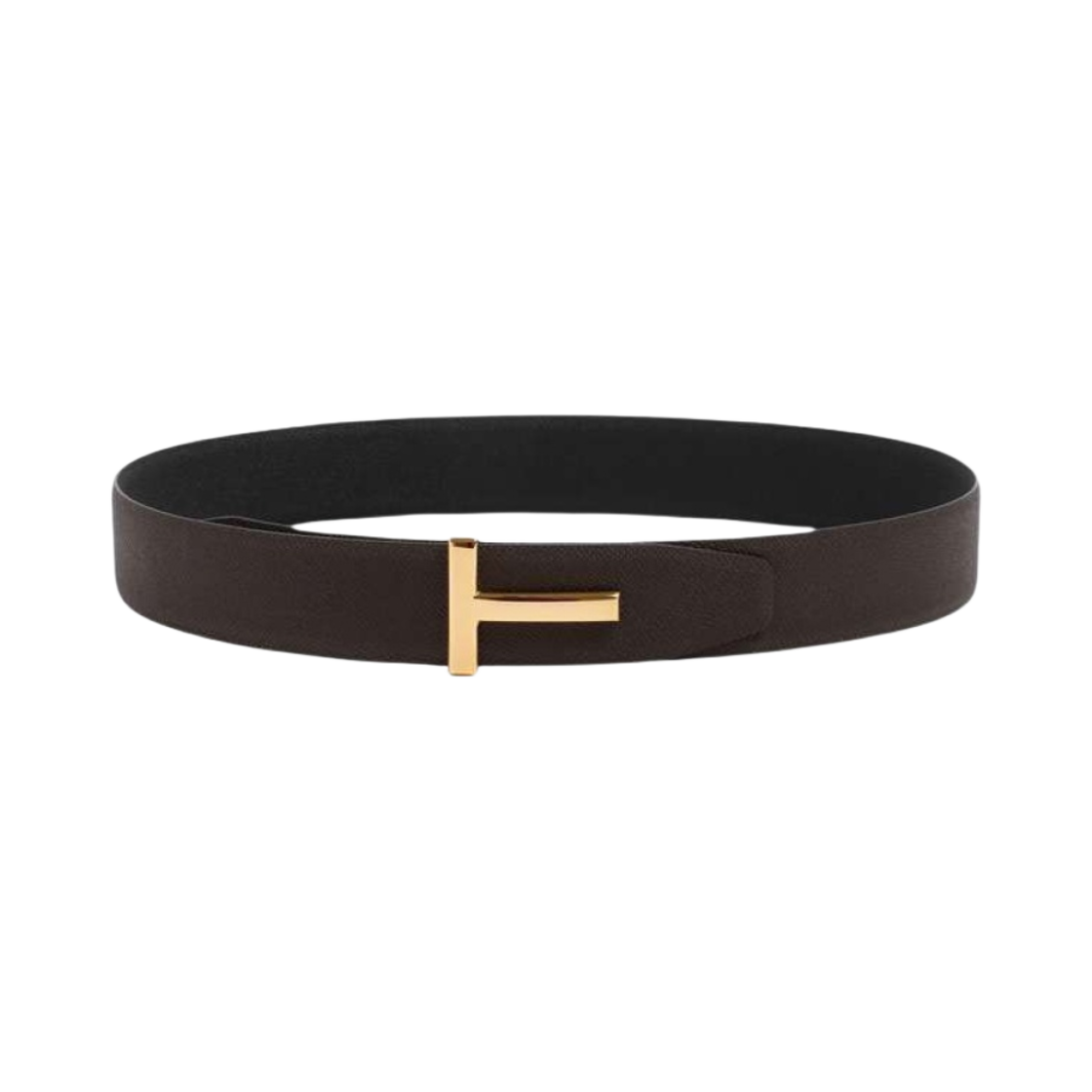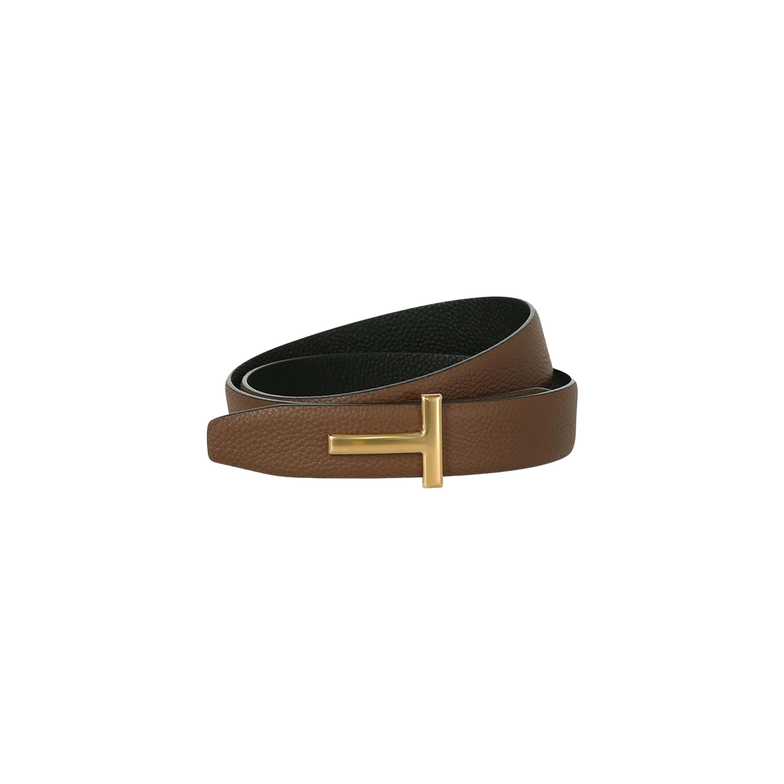 톰포드 소프트 그레인 레더 T 아이콘 벨트 브라운 블랙