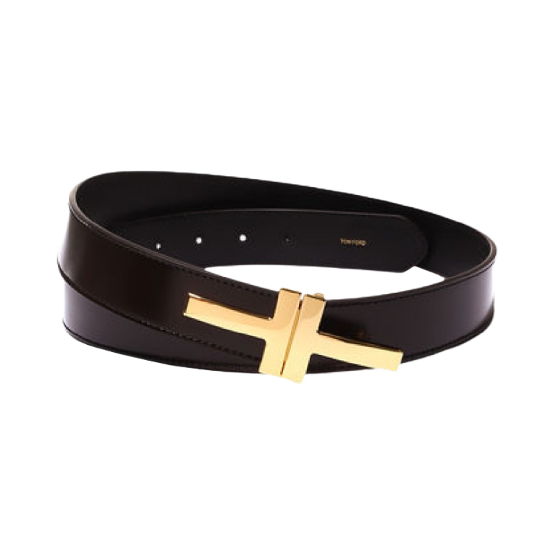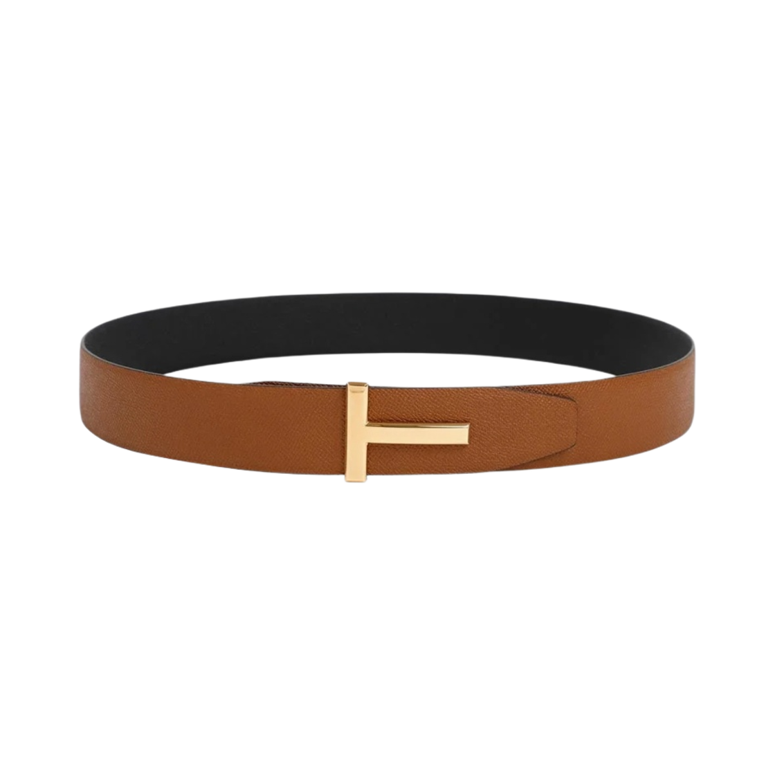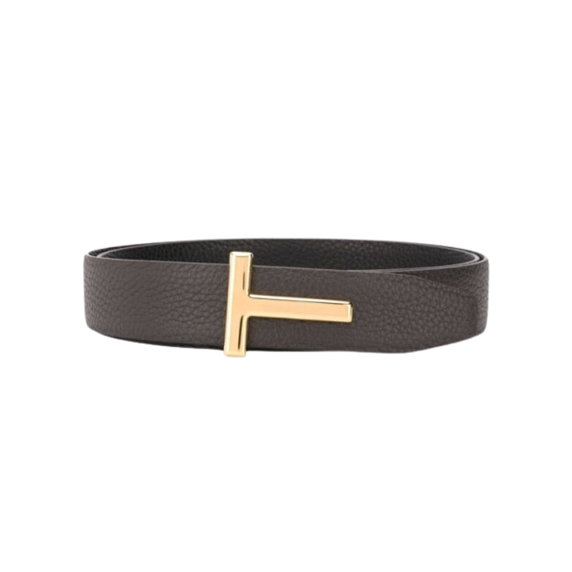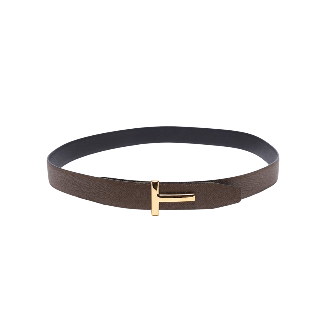 톰포드 소프트 그레인 레더 T 아이콘 벨트 브라운 블랙