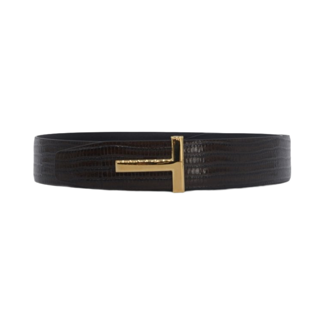 톰포드 그레인 레더 릿지 버클 T 벨트 브라운 블랙