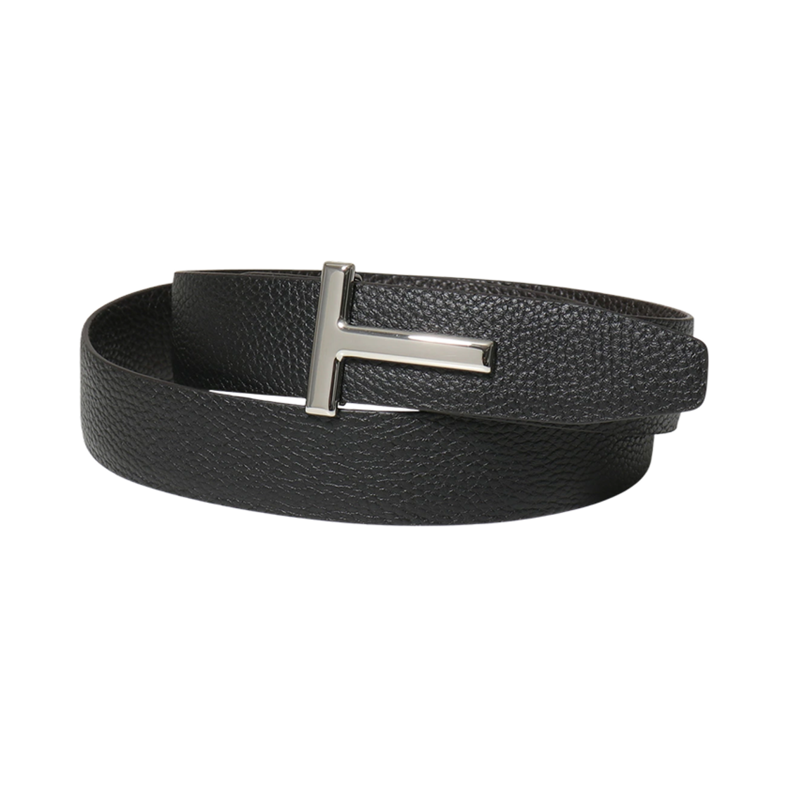 톰포드 그레인 레더 T 아이콘 벨트 블랙
