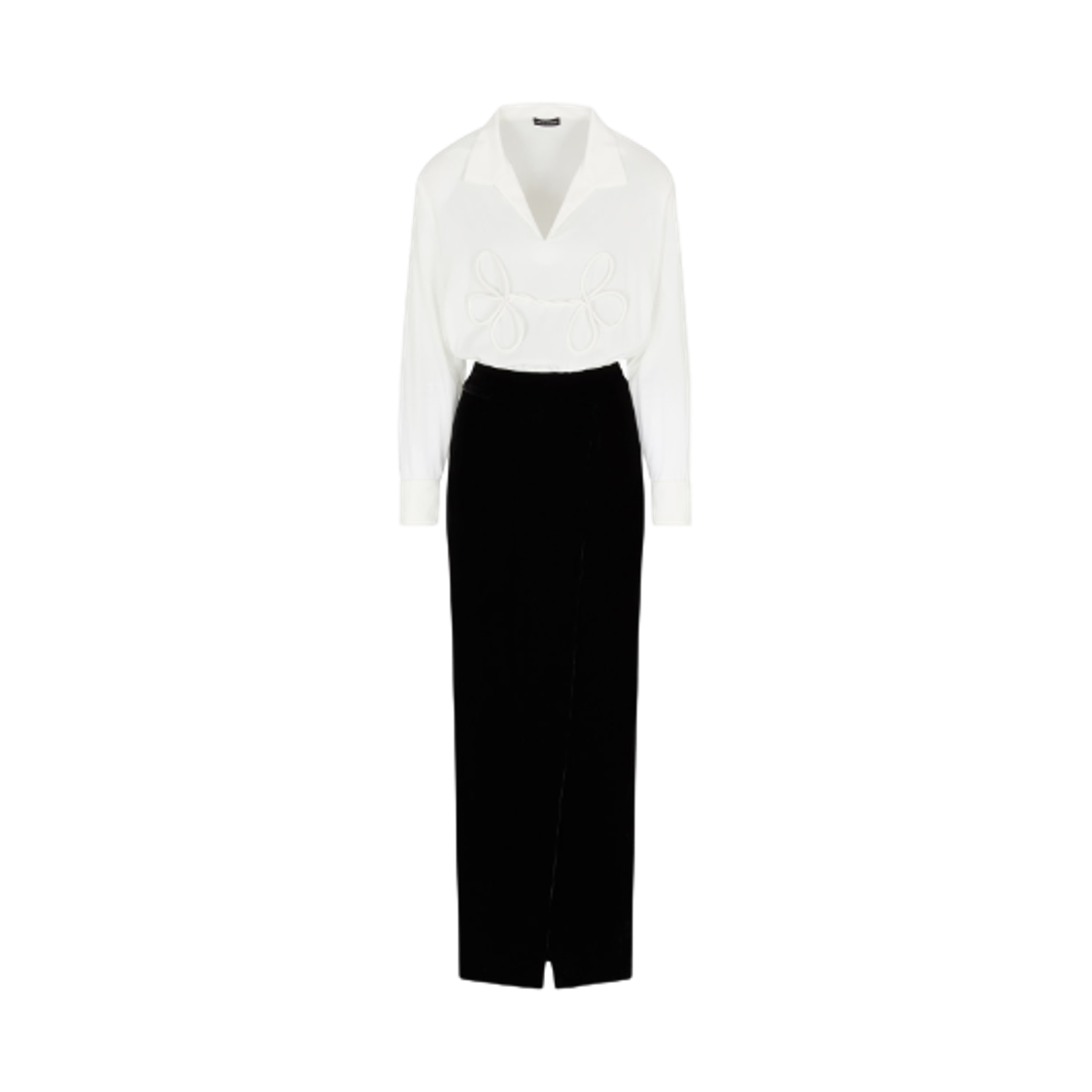 (W) 엠포리오 아르마니 ASV 투피스 이펙트 주 드 카르트 벨벳 드레스 블랙