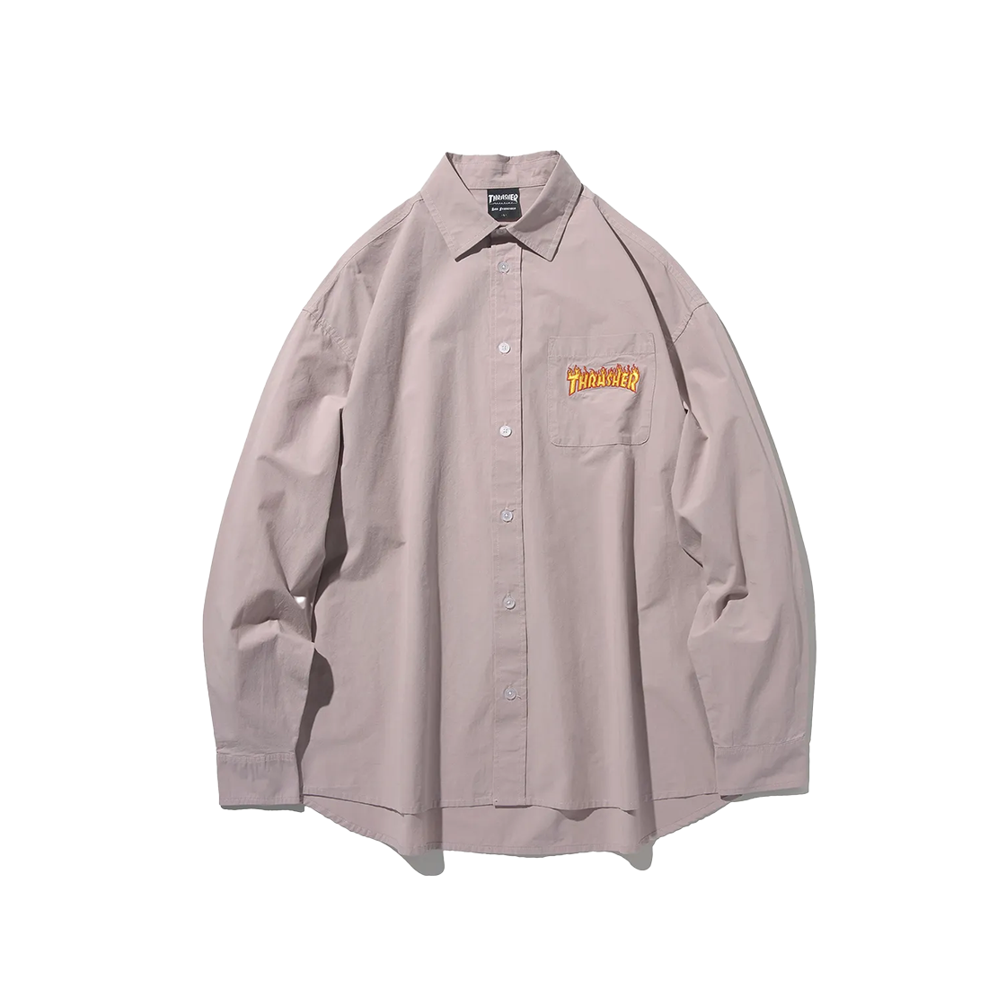 트레셔 스몰 플레임 로고 옥스포드 셔츠 화이트