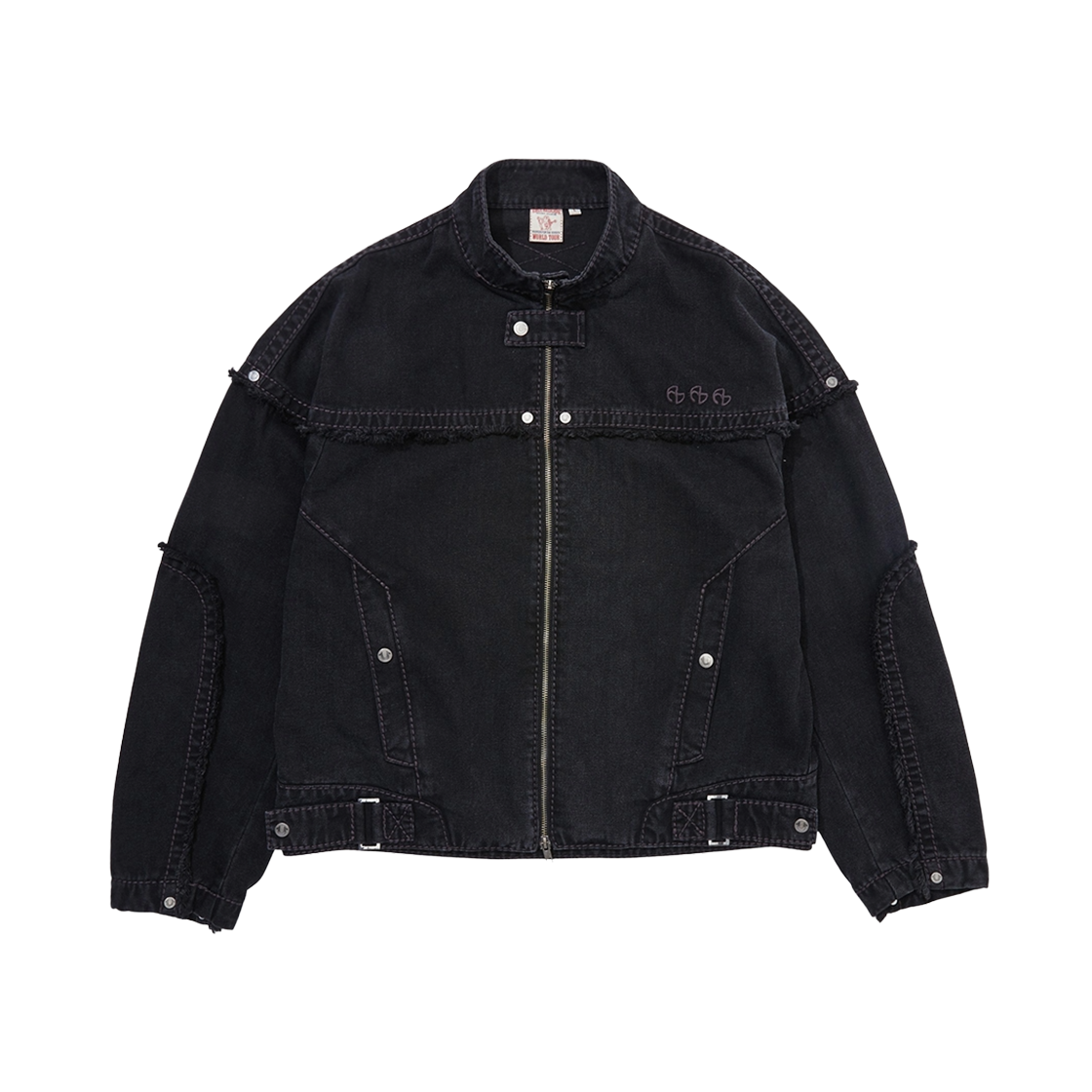 트루릴리젼 x 노메뉴얼 노 릴리젼 데님 라이더 자켓 워시드 블랙