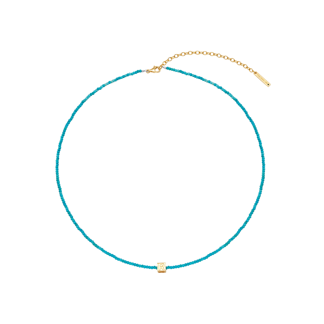 [예약 배송] 티링제이 큐브 이니셜 터쿼이즈 네크리스 골드